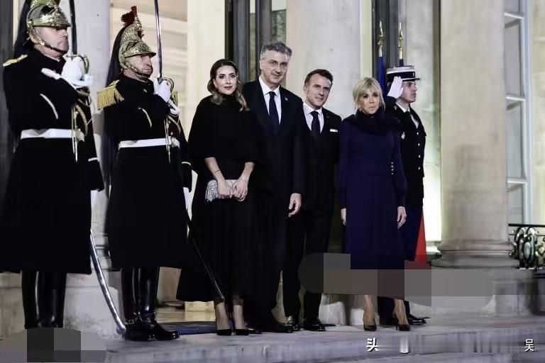 布丽吉特才刚回国又忙碌起来了,穿藏蓝色大衣裙,还盘起了头发,全新造型又美又年轻。 12月8日,法国总统马克龙携妻子布丽吉特在巴黎爱丽舍宫欢迎来访的克罗地亚总理夫妇。 72岁的布丽吉特穿着一身藏蓝色大衣裙,还围上了同色围巾,优雅又保暖。 布丽吉特挽着马克龙的手臂,夫妻俩站在爱丽舍宫门口,亲密热聊。 布丽吉特将头发挽起,更显端庄优雅,看起来也年轻了好多。 同框年轻了不少的克罗地亚总理夫人,72岁的布丽吉特美得毫不逊色,一把年纪还能光腿穿细细的恨天高,年轻的克罗地亚总理夫人也得佩服布老师的活力了。 和马克龙全程热聊,丈夫更是宠溺的望着她,布老师笑得很是甜蜜。