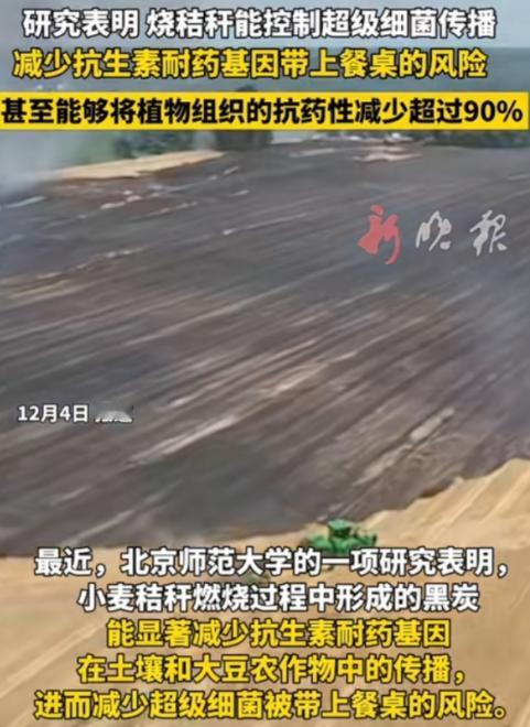 谁能想到?过去因“制造雾霾”被各地严令禁止、农民烧了就要挨罚的秸秆焚烧,如今竟爆出逆天功效——北师大最新研究显示,其产生的黑碳能将农作物中的抗生素耐药基因削减90%以上,直接掐断超级细菌通过食物链入侵人体的路径! 以前谁家烧秸秆被逮着,罚款是跑不了的。那些年为了治雾霾,“全域禁烧”的牌子在田间地头随处可见,农民们处理秸秆犯了难,政策执行起来也满是抵触情绪。 可谁能想到,这曾被视作“环境杀手”的秸秆焚烧,如今竟藏着对抗超级细菌的秘密。 北京师范大学最新的研究刚曝光,小麦秸秆烧出来的黑炭,能把农作物里的抗生素耐药基因砍掉90%以上。 说白了,这东西就像土壤里的“净化器”,疏松多孔的结构既能吸附微塑料这类污染物,还能给有益微生物安家,反过来抑制携带耐药基因的病菌繁殖。 要知道,这些耐药基因可不是小事,扬州大学之前就在猪肉里检出过带耐药基因的高毒细菌,它们能顺着食物链爬到人身上,普通抗生素根本治不了。 更关键的是,农田里的耐药基因早就成了隐患,搜狐网的研究显示,施猪粪堆肥的稻田里,耐药基因能从土壤爬到水稻根上,甚至传到叶片里,而化肥和无肥地块也没能完全避免这种传播。 浙江科技大学的实验更直接,粪肥会让土壤里的耐药基因丰度涨6.2倍,接合转移率提高3倍,这意味着超级细菌扩散的风险大大增加。 这么看,北师大发现的黑炭功效,刚好戳中了这个痛点。 但这事没法简单叫好,清华大学早算过账,2006年全国秸秆焚烧排出217万吨PM2.5,还有1.5亿吨二氧化碳,污染强度高的地区集中在华北华东几省。 就像有人担心的,实验室里的效果到了田间,遇上刮风下雨、土壤差异,能不能稳住还是个问题。 不过政策已经在变了,2025年中央一号文件第一次提出精准划定禁烧范围,不再搞“一刀切”。 农视网的专家解释,这不是放开烧,而是给那些秸秆难处理、影响下茬耕作的地块留条出路,核心还是要推动秸秆综合利用。 现在全国秸秆综合利用率超88%,能变肥料、饲料甚至清洁能源,这些法子比烧了更划算。 说到底,黑炭的功效更像给秸秆治理开了个新视角,而不是让焚烧“洗白”。 未来要是能把焚烧控制在特定时段、特定区域,再配上收集黑炭还田的技术,或许能既压住污染,又拦住超级细菌。 毕竟不管是禁还是限,平衡好农民生计、粮食安全和环境保护,才是最实在的。 以上都是个人观点,对此您有什么不同的看法,可以在评论区留言讨论!!! (信息来源:中华网--研究称烧秸秆能控制超级细菌传播揭示黑炭双重作用)