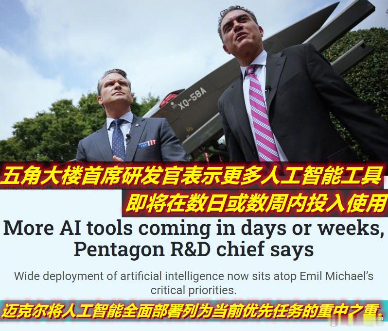 昨天么负责研究与工程的副防长说,美军将在数日或数周内大规模部署用于后勤保障、情报分析和作战策划的新型人工智能工具。他还特别强调说,中国正致力于对先进芯片进行逆向工程并自主研发芯片——“如果你审视阿斯麦、台积电和英伟达的供应链,就会发现中国正试图用其国内资源复制这种能力。”