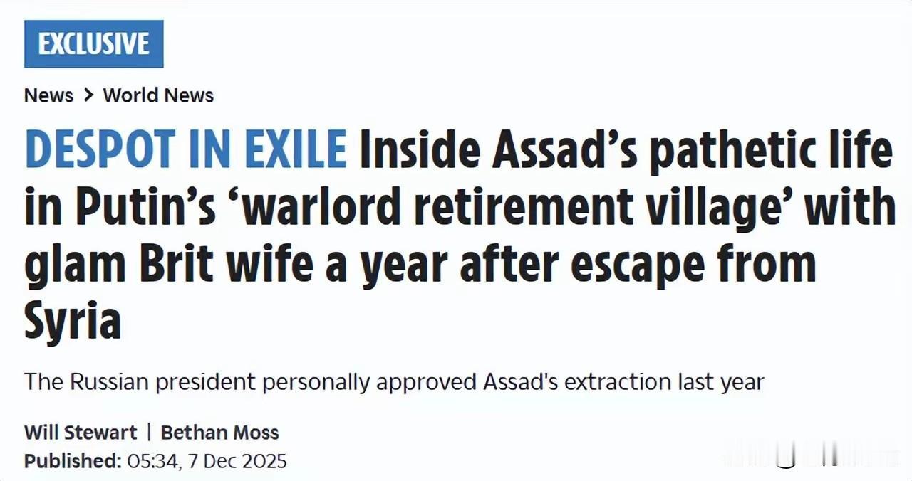 1. 阿萨德亡国一年无心东山再起 天天打游戏度日:阿萨德亡国一年,在俄住莫斯科豪宅或秘密地区(如麻雀山),俄方保护且要求其不涉政,现在天天打游戏;普京曾说会与他面谈,近日佩斯科夫对会面消息讳莫如深。