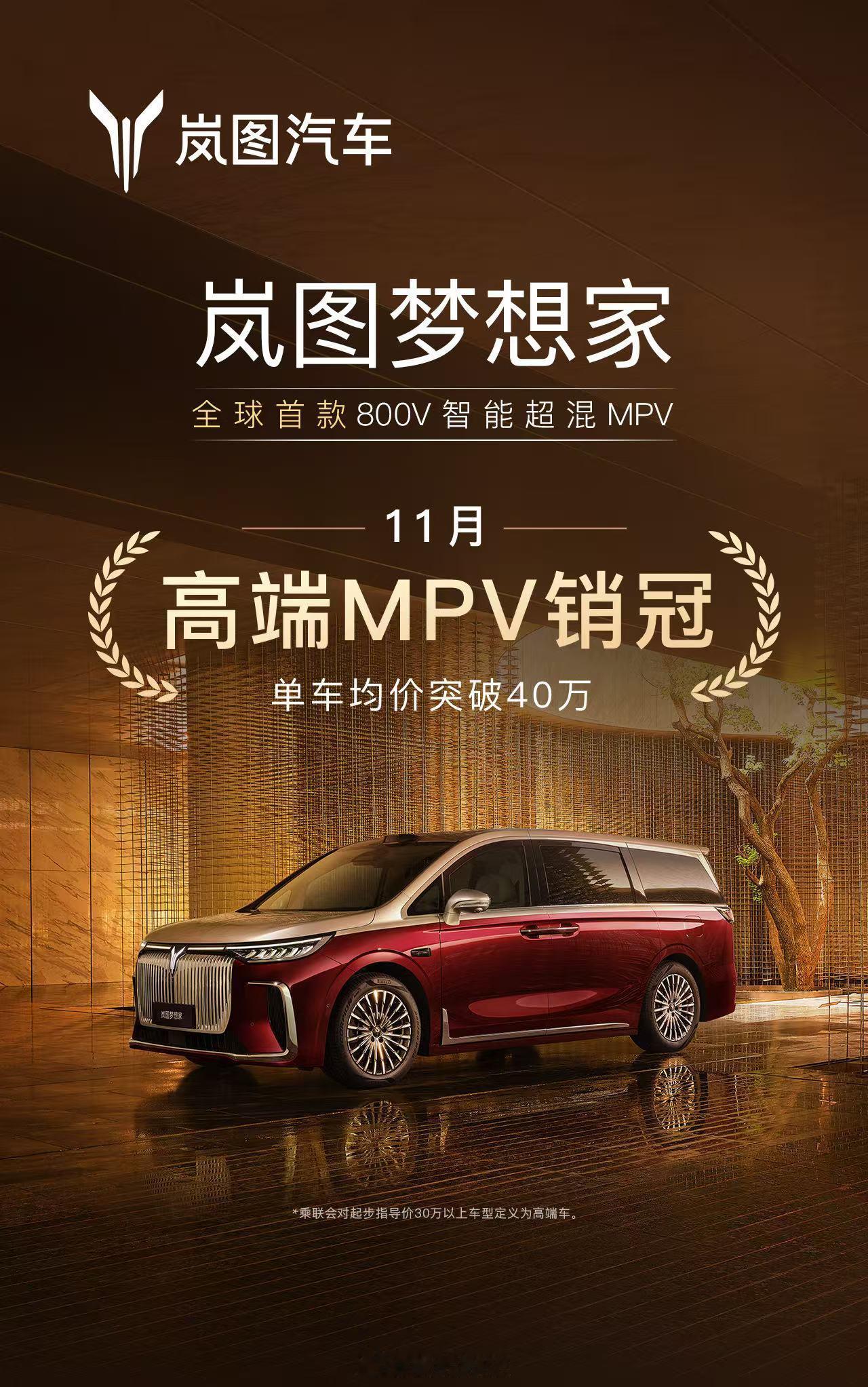 2026款岚图梦想家 11月的岚图梦想家销量依然坚挺,9027台夺得高端MPV市场月销冠军。具体的排行数据,大家可以网上查一下。26款梦想家的革新比较大,配置上比较堆料 —— 首搭800V混动架构、350公里纯电续航、62.5kWh大电池、华为乾崑ADS 4、鸿蒙座舱5、后轮转向。高端MPV销量冠军