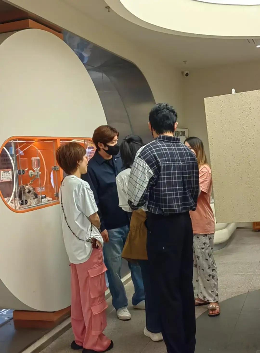鲍蕾夫妇与郭京飞聚会,49岁陆毅又高又瘦,看着比妹夫要年轻10岁!