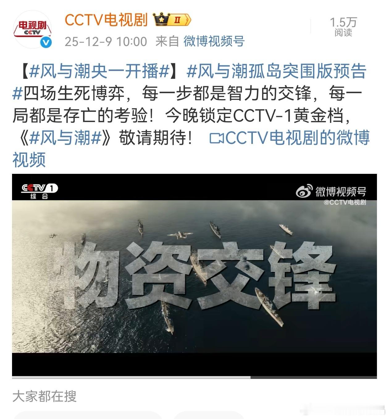 爱奇艺首页已经有《风与潮》专栏,前四集预告片来了,12月9日央视一台黄金档和爱奇