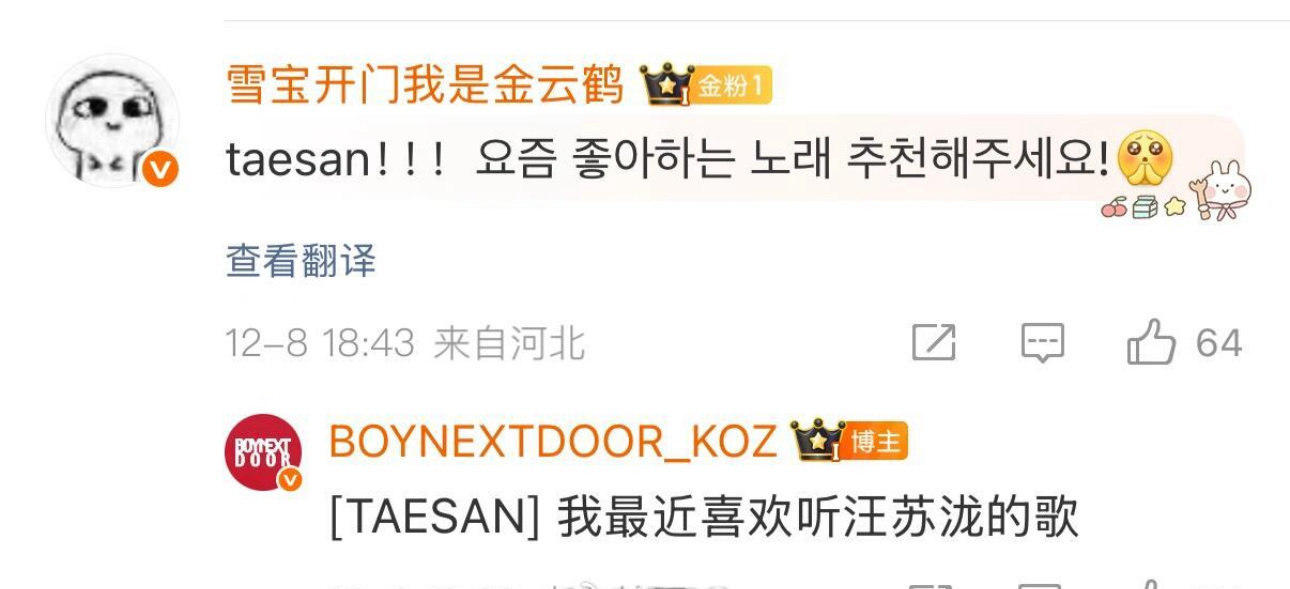 汪苏泷甜到kpop去了韩国男爱豆最近在听汪苏泷 粉丝提问 成员近期爱听的歌,成员直接点名 “最近喜欢听汪苏泷”“汪苏泷有点甜”~谁懂啊!甜系旋律直接火到泡菜国,这波文化输出属实稳了,和 kpop 的不解之缘又添一笔!