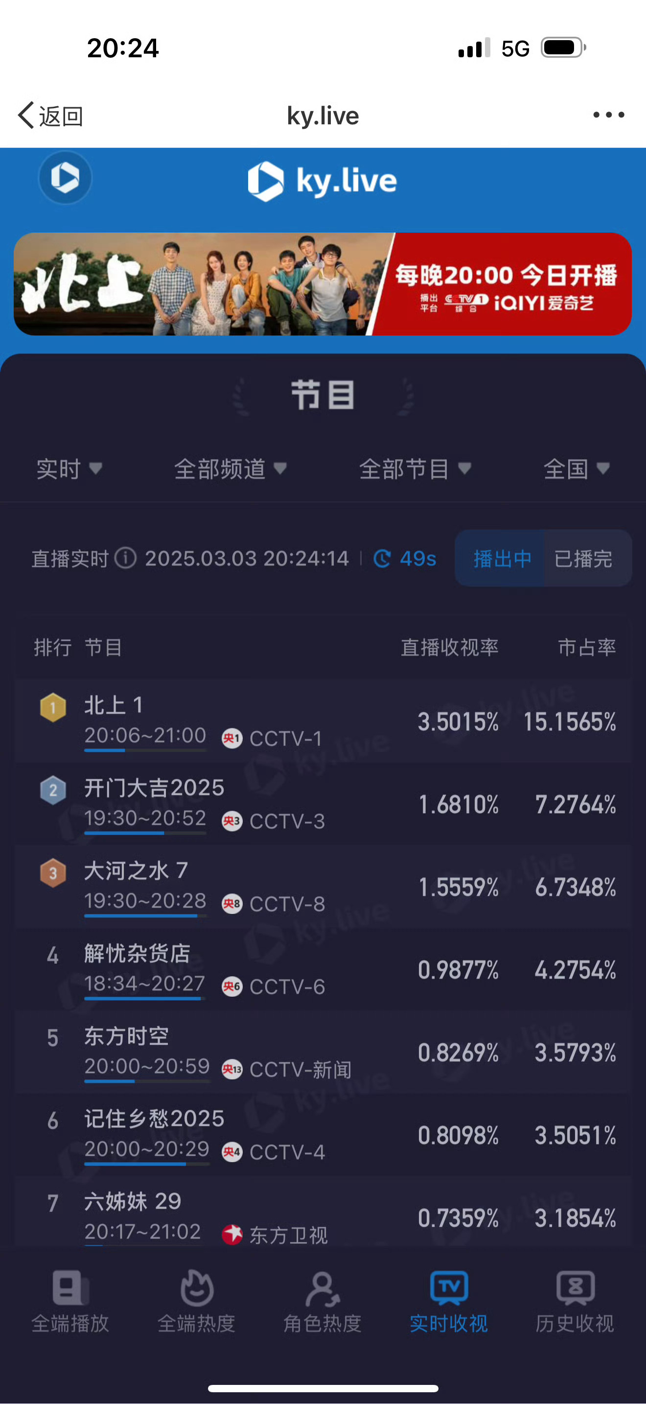 默默欣赏一下白鹿北上开播当晚第一集酷云收视率。