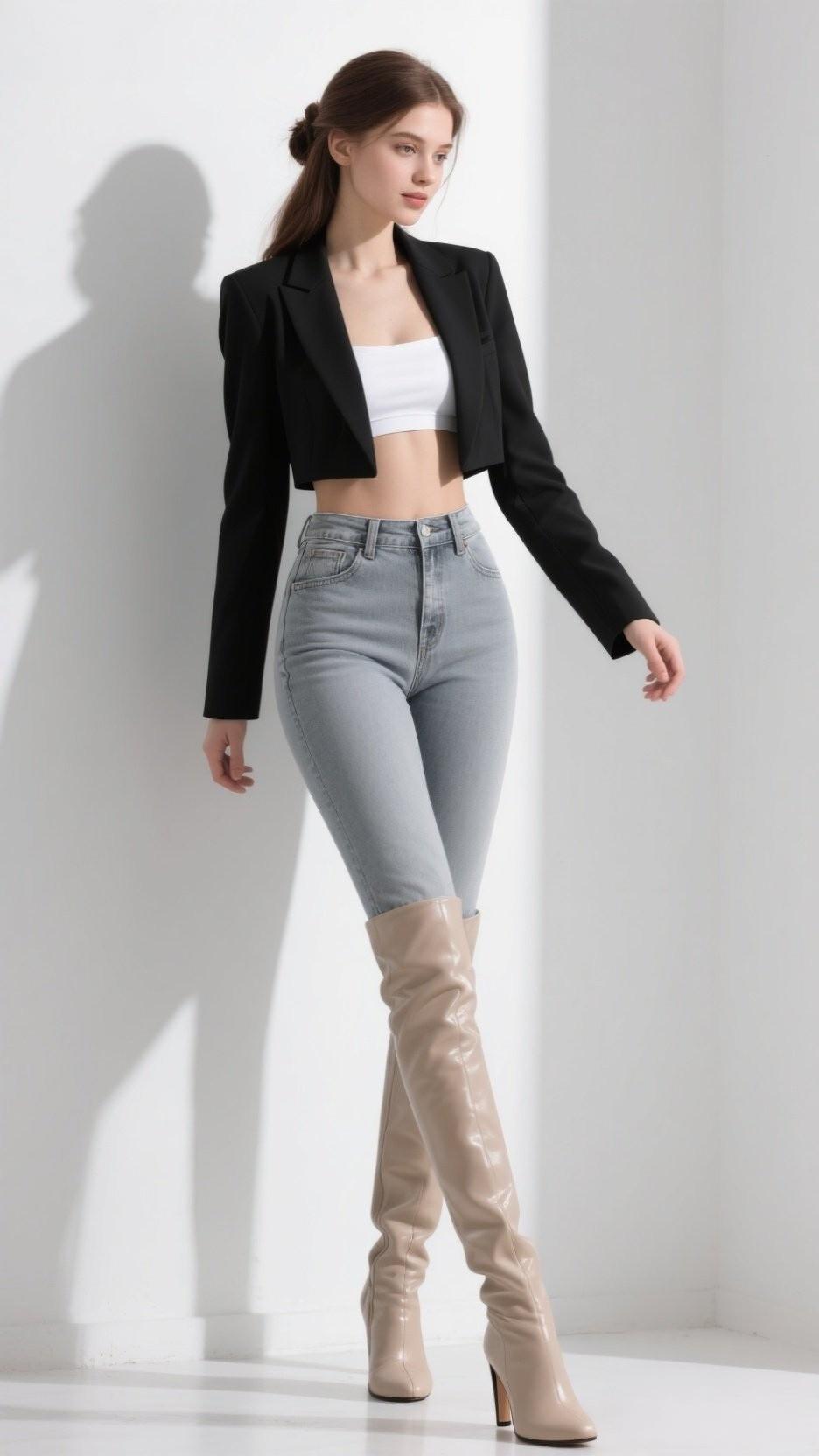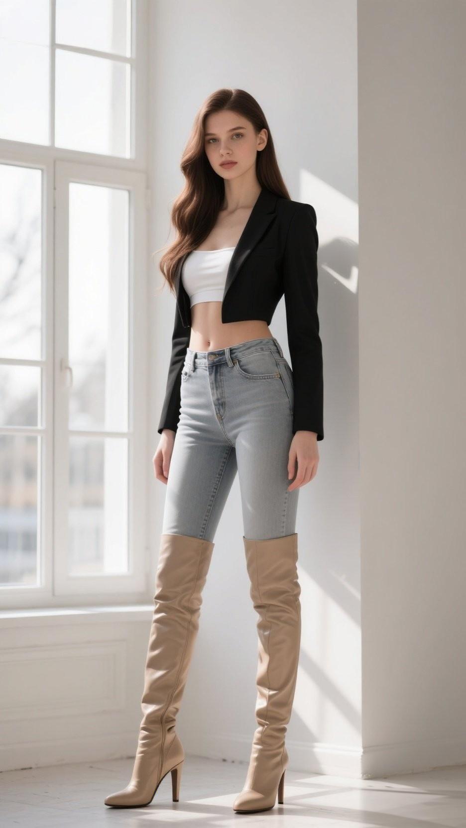 阳光洒进来的瞬间,优雅蓝西装下的自然美