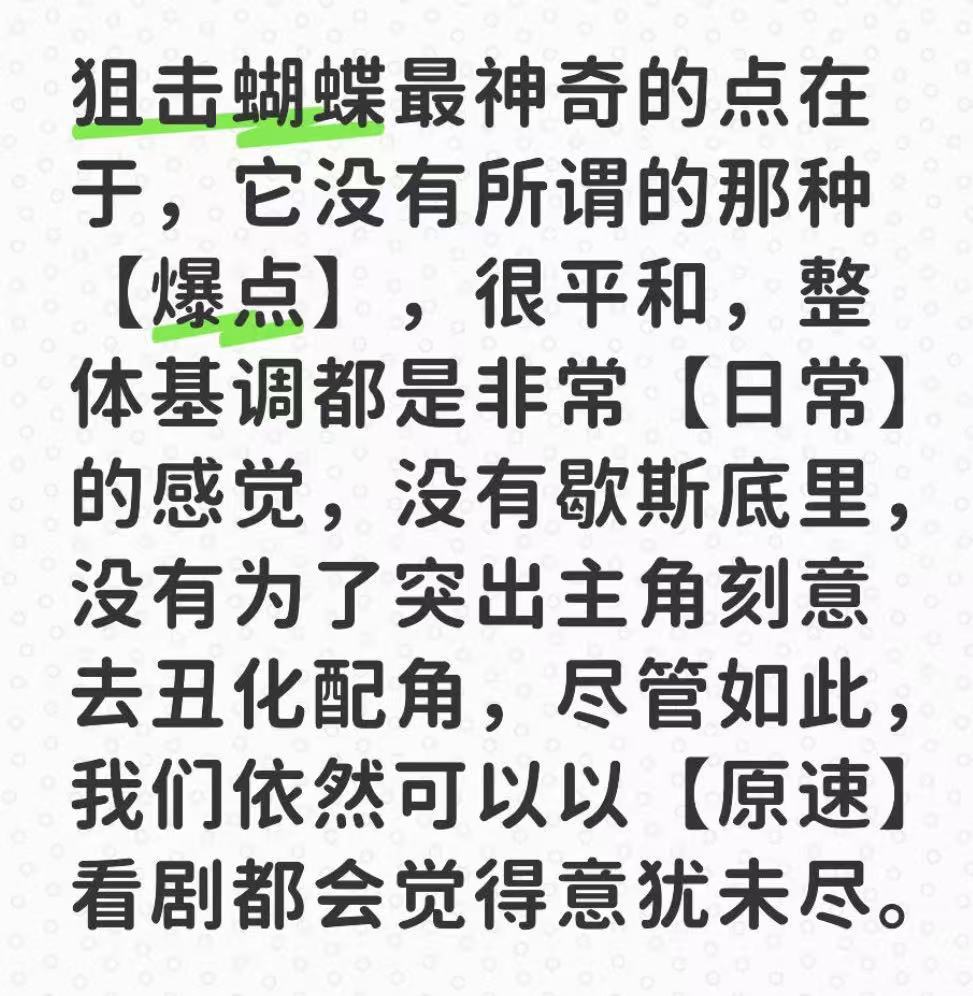 狙击蝴蝶 最佳改编原著奖 《狙击蝴蝶》改编上大分!特别喜欢剧里把原著的坏姑姑改成了姑父这点!还有把男主和女主第一次在山里的相处多增加了一晚,通过李雾对女主的照顾和守护来展现角色本身的纯善,奠定了人物形象的基础!又合逻辑又真实好嗑!不愧是《柳舟记》《在暴雪时分》同个制作公司!《狙击蝴蝶》你拿什么输!