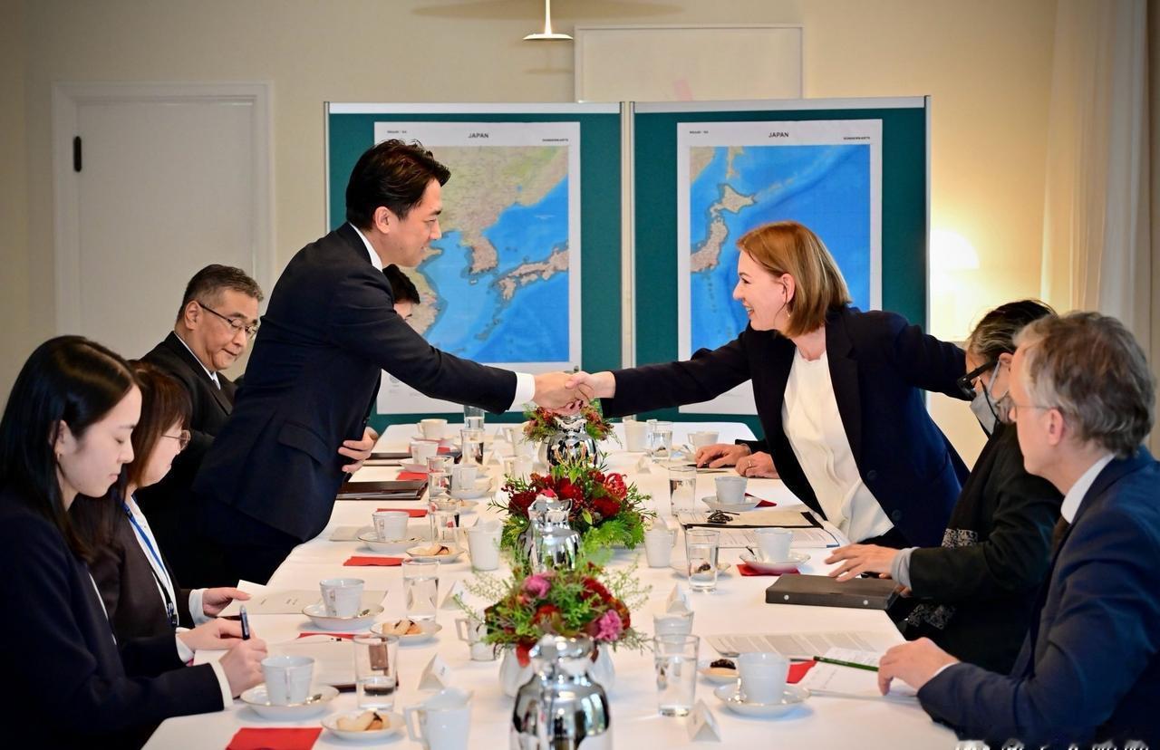 日本防卫大臣小犬向德国大使介绍了中日军机雷达照射的发生地。[吃瓜群众][吃瓜群众]