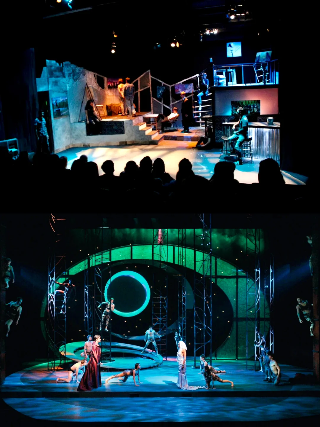 🎭戏剧的发展历史长河中, 舞美对戏剧呈现越来越重要, 传统的剧院舞台设计被打破, 随着科技的发展、时代的进步, 越来越多的新型舞台效果, 奇幻的演出装置、 炫目的灯效、 上天入地的空间创意, 大胆而具有革命性的舞台创作不断涌现、 越来越多奇思妙想与天马行空的想法慢慢成为现实。 以上为国外戏剧舞美剧照呈现,有多种设计思路与灵感值得大家学习✏️(素材源自网络,仅做分享使用)