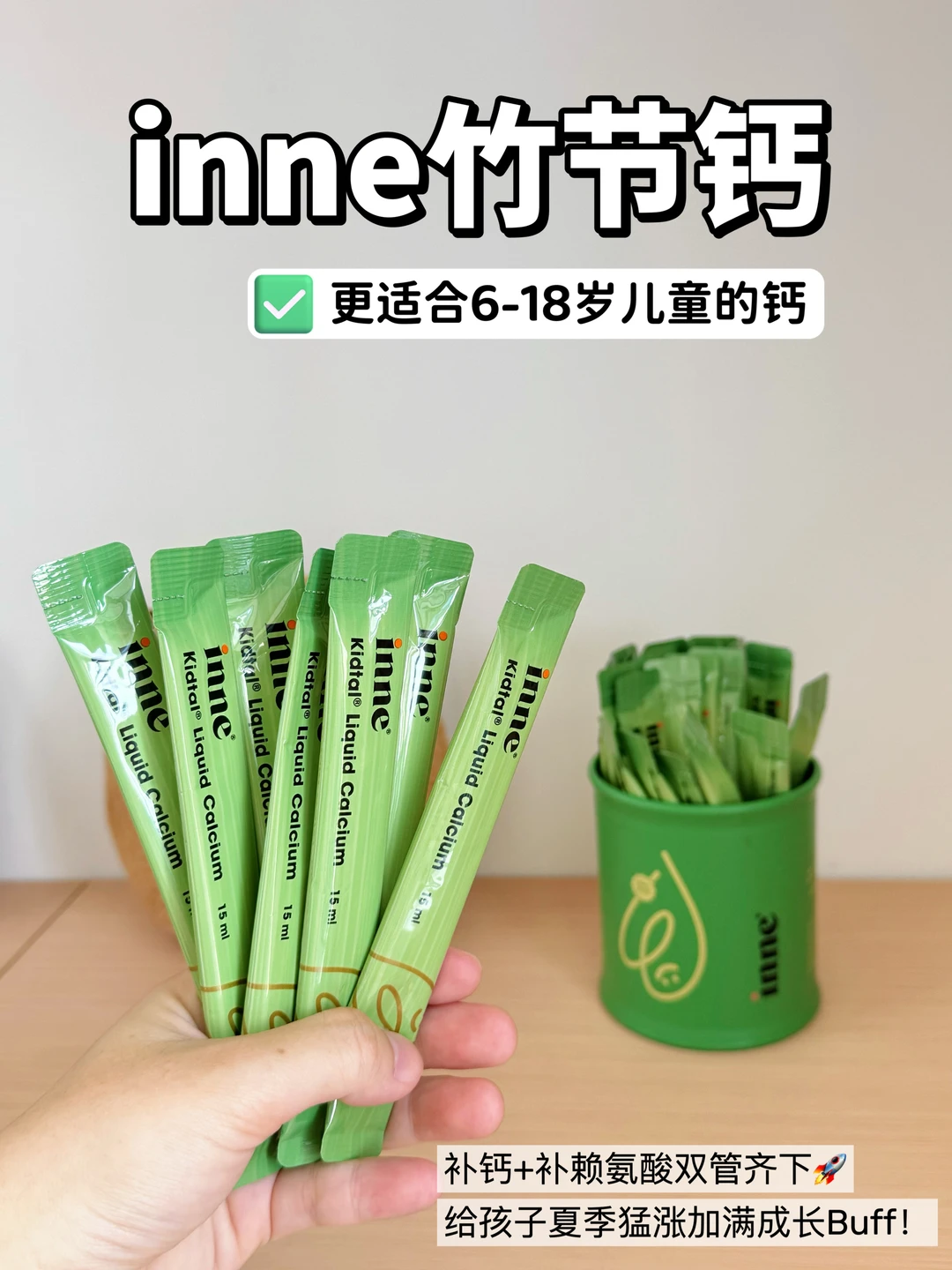 😂如果嫌麻烦,不想这么多瓶瓶罐罐,就选有赖氨酸的钙剂,比如inne竹节钙,就是专门为6岁+儿童研发的钙剂,它比传统钙片多了专利生长因子赖氨酸,包含✅赖氨酸200mg+精氨酸+γ-氨基丁酸铁三角,直接给成长动力🚀充到满格!