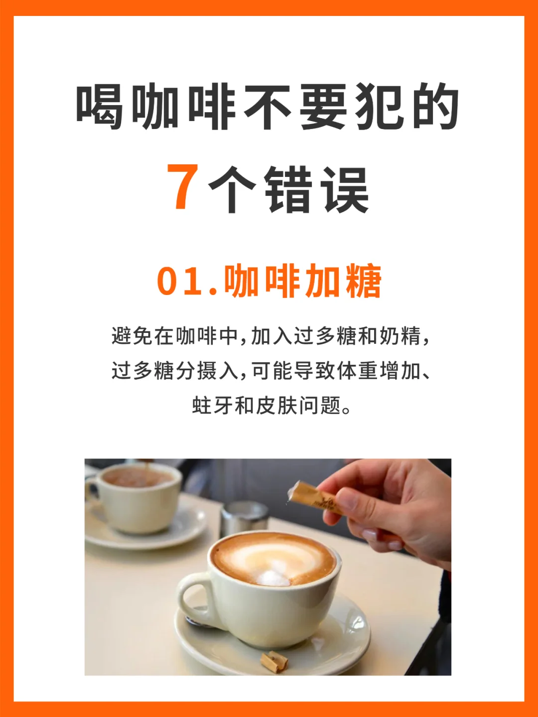 ☕️☕️☕️ 喝咖啡不要犯的错误 ☕️☕️☕️ 大家好呀!☀️☀️☀️ 今天我要跟大家聊聊喝咖啡不要犯的错误。☕️☕️☕️ 首先,不要加太多糖和奶油哦!这样会让你的咖啡热量暴增,而且也会破坏咖啡的原味,让你无法享受到纯粹的咖啡风味。😋😋😋 其次,晚上不要喝太多咖啡哦!一天喝太多咖啡会让你的身体产生负担,导致心悸、失眠等不良反应。💤💤💤 最后,要记得清洁咖啡机哦! 好了,今天的小贴士就到这里啦!记得要喝好咖啡哦!👍👍👍