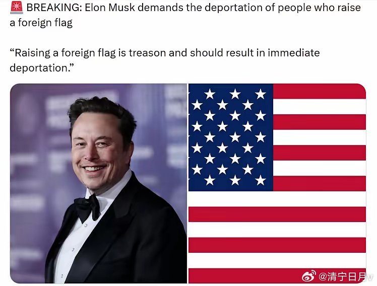 埃隆·马斯克要求驱逐那些举外国国旗的人:“举外国国旗就是叛国,应当立即被驱逐出境。”