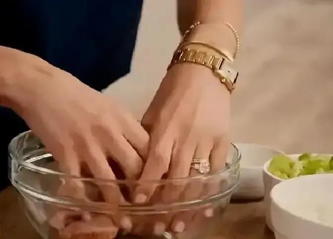 梅根戴满钻项链和手镯,蹲在自家大理石岛台旁,两只手直接伸进生鸡肉盆里。 镜头扫过,珠宝闪得比头顶吊灯还亮。 网友数了数,项链加手镯估值46万美元,够买套别墅。 英国食品安全署官号转发截图,配文提醒先洗手,点赞瞬间破三十万。 卡地亚悄悄给这条吐槽点了个赞,又秒删。 Netflix倒乐开花,直接追加投资,说争议就是流量。 她团队一句“艺术表达”带过,视频原样挂着,连手套都没补拍。 观众分两派,一边骂脱离现实,一边夸真性情。 厨房卫生科普倒意外出圈,FSA官网被挤爆。 珠宝再贵也遮不住常识漏洞,公众人物拍片还是长点心。 洗手三秒,比钻石闪多了。