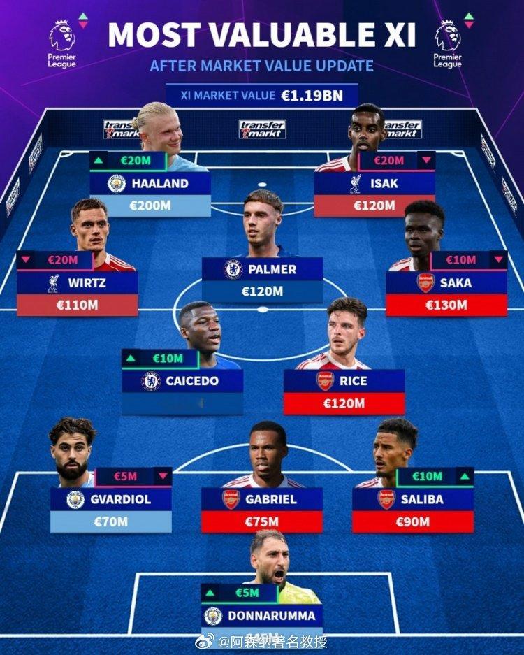 德转英超最贵阵容,四名枪手赫然在列 英超联赛 阿森纳著名教授