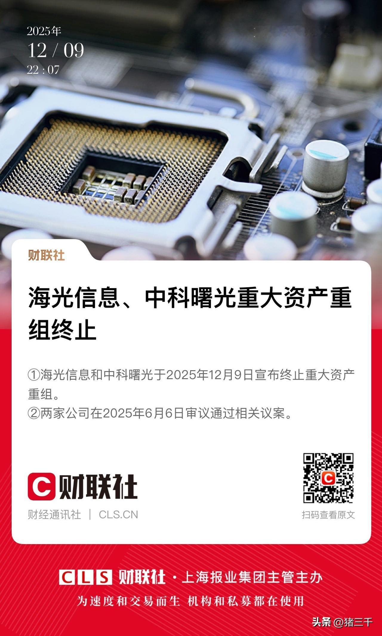 晴天霹雳! 海光信息和中科曙光重大资产重组告吹! 两者在6月份换股吸收合并方案出炉后, 股价均实现了翻倍大涨, 如今说推翻就推翻, 会不会有操纵股价的嫌疑? 不过好在这种模式, 至少目前是利多股民的, 因为一直高位运行, 理论上大家都是赚钱的! 但若是你高位才进仓讲格局, 那么最后恐怕会遍体鳞伤! …