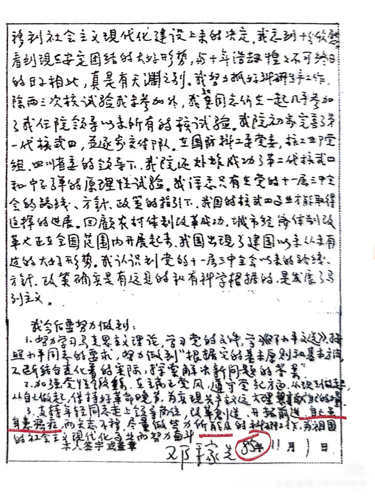 邓稼先病逝一年前的珍贵手稿。 看到等老40年前手稿,依然令人热泪盈眶。
