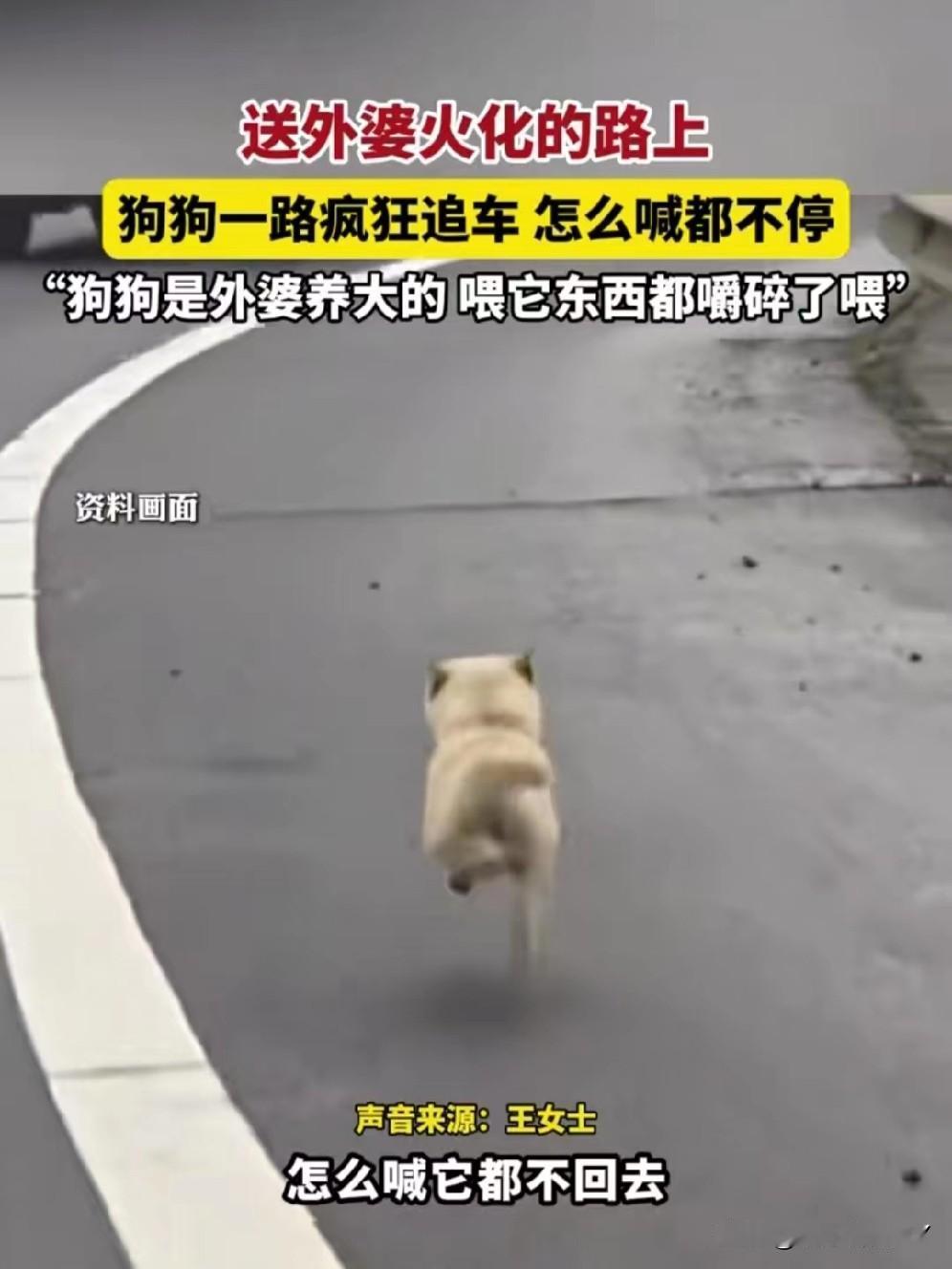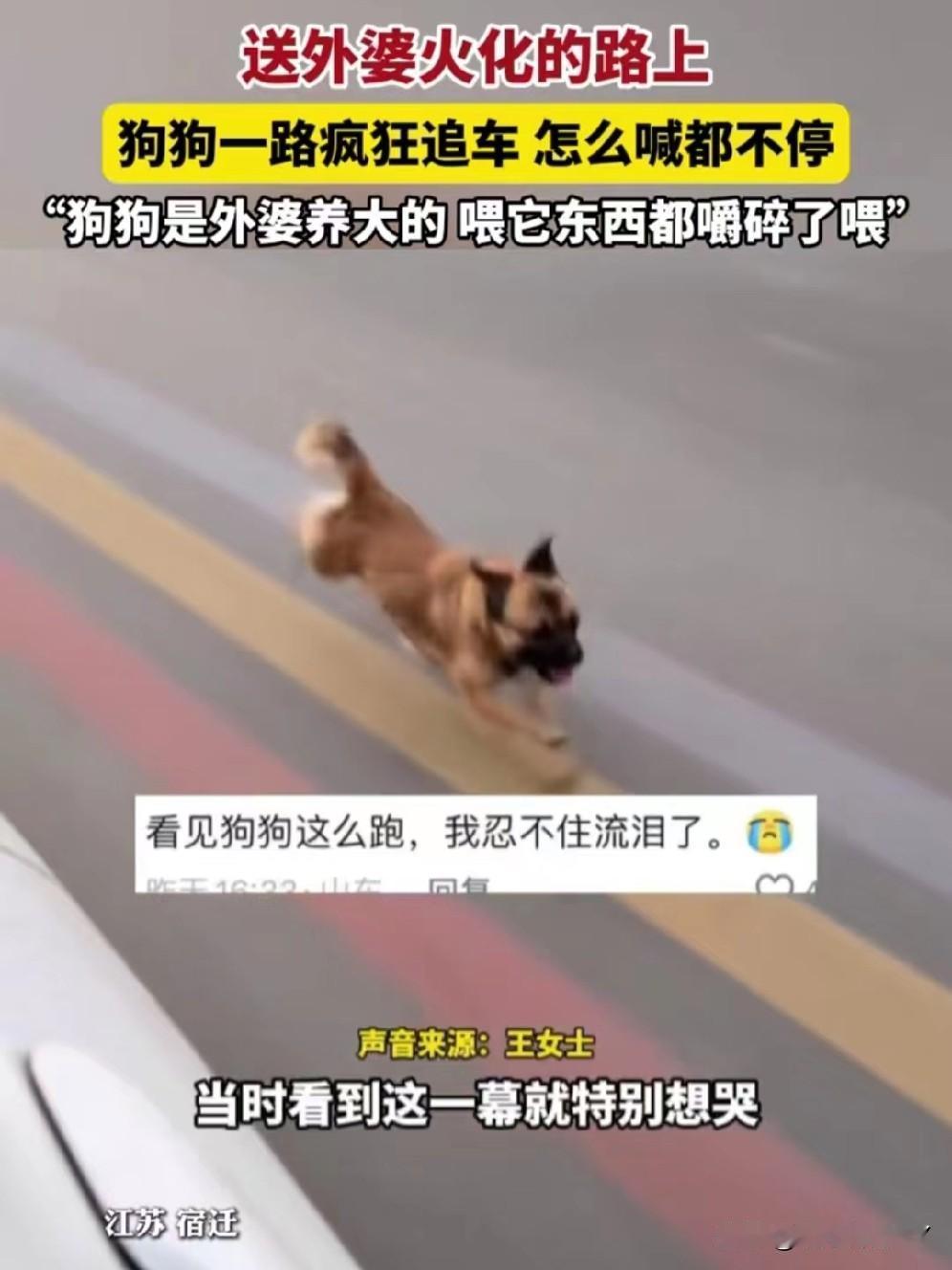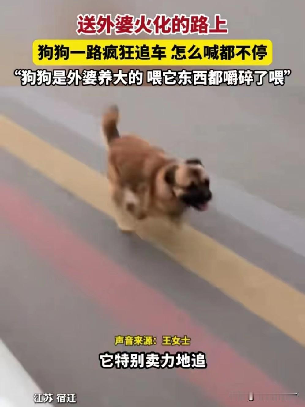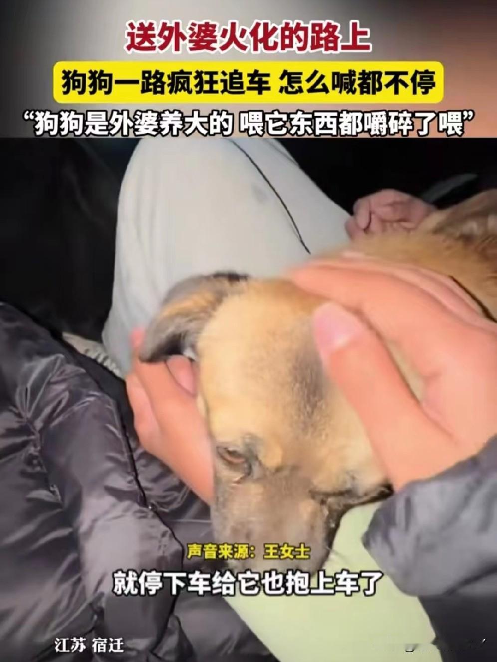 宿迁有只狗狗追着车送别外婆,它不懂离别含义,却用一生铭记着你的好! 江苏宿迁,送外婆去火化的路上,外婆养的狗狗像疯了似的追着车跑,不管怎么呼喊,它都不肯停下脚步…… 它心思单纯,只知道要追逐着那个最疼自己的人,哪怕这只剩最后一段路程。 平日里,外婆喂的每一口饭,抚摸它脑袋的每一次动作,都化作了它刻在骨子里的牵挂。 狗狗的爱简单而纯粹,它不明白生死的诀别,却把所有温柔都给予了对自己好的人。 这份跨越物种的深情厚谊,蕴含着最朴素的真心,愿外婆安息,也愿狗狗在往后的日子里能有人悉心善待。 秋日生活打卡季 外婆