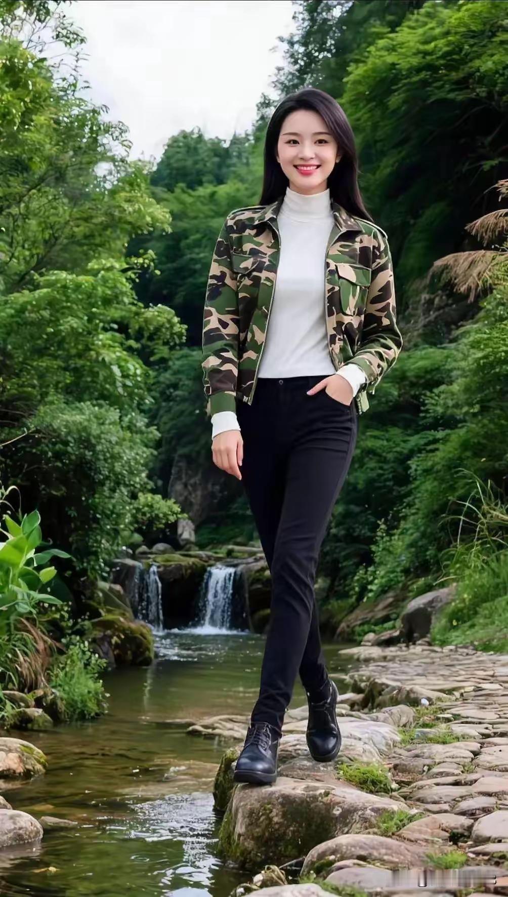山坡羊·森林俏影 森林幽静, 翠枝相映, 迷彩娇娥风姿盛。 步轻盈,韵空灵。 花间信步啼莺警, 叶底清歌幽梦萦。 人,如画景; 林,添雅情。