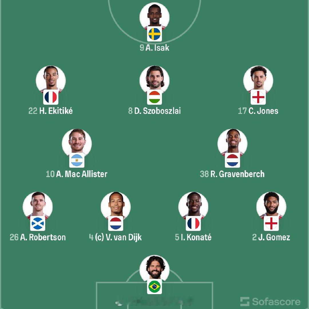 国际米兰vs利物浦 欧冠联赛萨拉赫没有进入大名单,加克波因伤缺席数周,基耶萨生病,在三名进攻球员缺阵的情况下,斯洛特排出了这样一个首发阵容:门将:阿利森后防:乔戈麦斯、科纳特、范戴克、罗伯逊中场:麦卡利斯特、格拉芬贝赫前场:琼斯、索博斯洛伊、埃基蒂克中锋:伊萨克