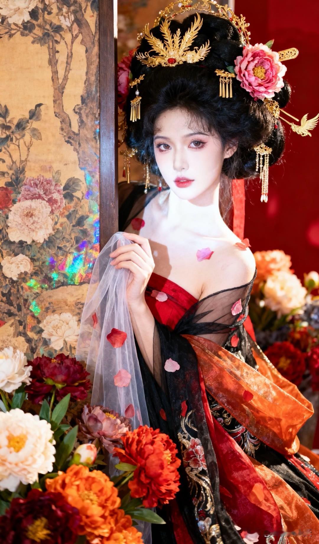 想衣裳花想容,春风拂槛露华浓;粉白罗裙映月明,花间独坐醉清秋。美女人像群