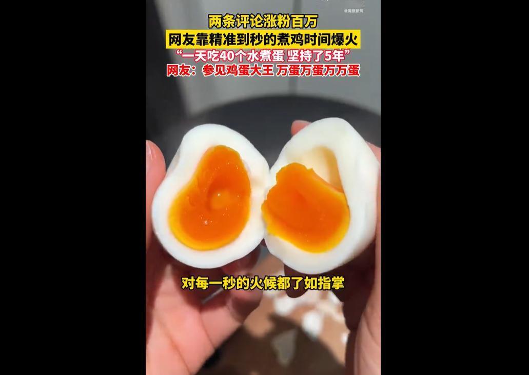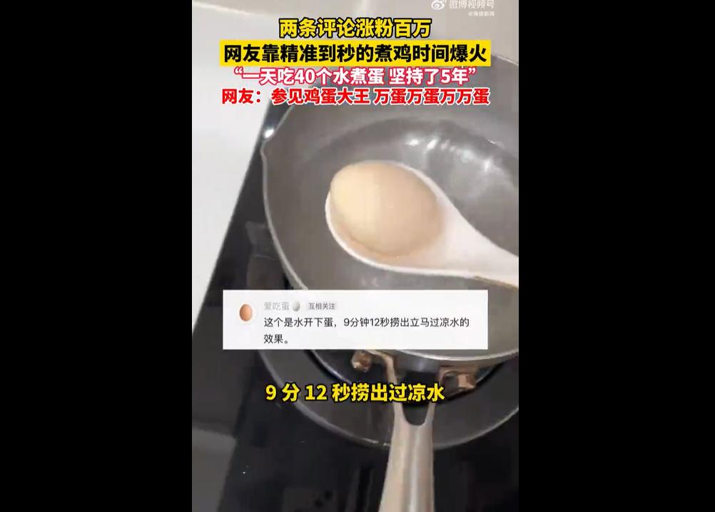 网友分享爸爸煮的 “神仙鸡蛋” 后,博主 “爱吃蛋” 在评论区精准给出 “水开下蛋 9 分 12 秒煮金沙蛋、7 分 11 秒煮溏心蛋” 的秘方,引网友实测成功。 他一夜涨粉超 25 万,账号粉丝达 251 万,还被央视转发,60 秒以上视频广告报价 2400 元。 “煮鸡蛋大神” 爆火看着意外,其实全是必然! 别人煮蛋只说 “几分钟”,他精准到秒,给的是能直接抄的 “标准答案”,普通人花几分钟就能成功,这种低门槛的实用技巧,谁不爱学? 更关键的是,这背后是他五年吃近 7 万颗蛋的深耕,不是随口瞎编,专业度才让人信服。 现在很多内容要么泛泛而谈,要么全是模糊指令,他偏把 “煮鸡蛋” 这种小事做到极致,刚好戳中大家对 “确定性” 的需求。 一夜涨粉、广告报价 2400 元,是市场对他专业价值的认可。 这也说明,不用追求全能,把一件平凡小事做透、给出真干货,既能被大家喜欢,也能收获实实在在的回报,普通人也能靠极致专注出圈!
