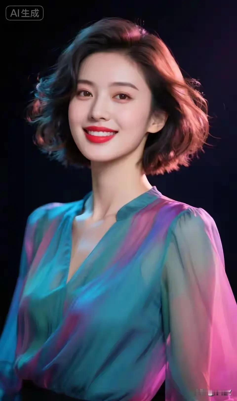 绝色美人,倾国倾城 短发飘逸,肤白貌美 眉若春山,眼若秋水 环肥燕瘦,雍容华贵