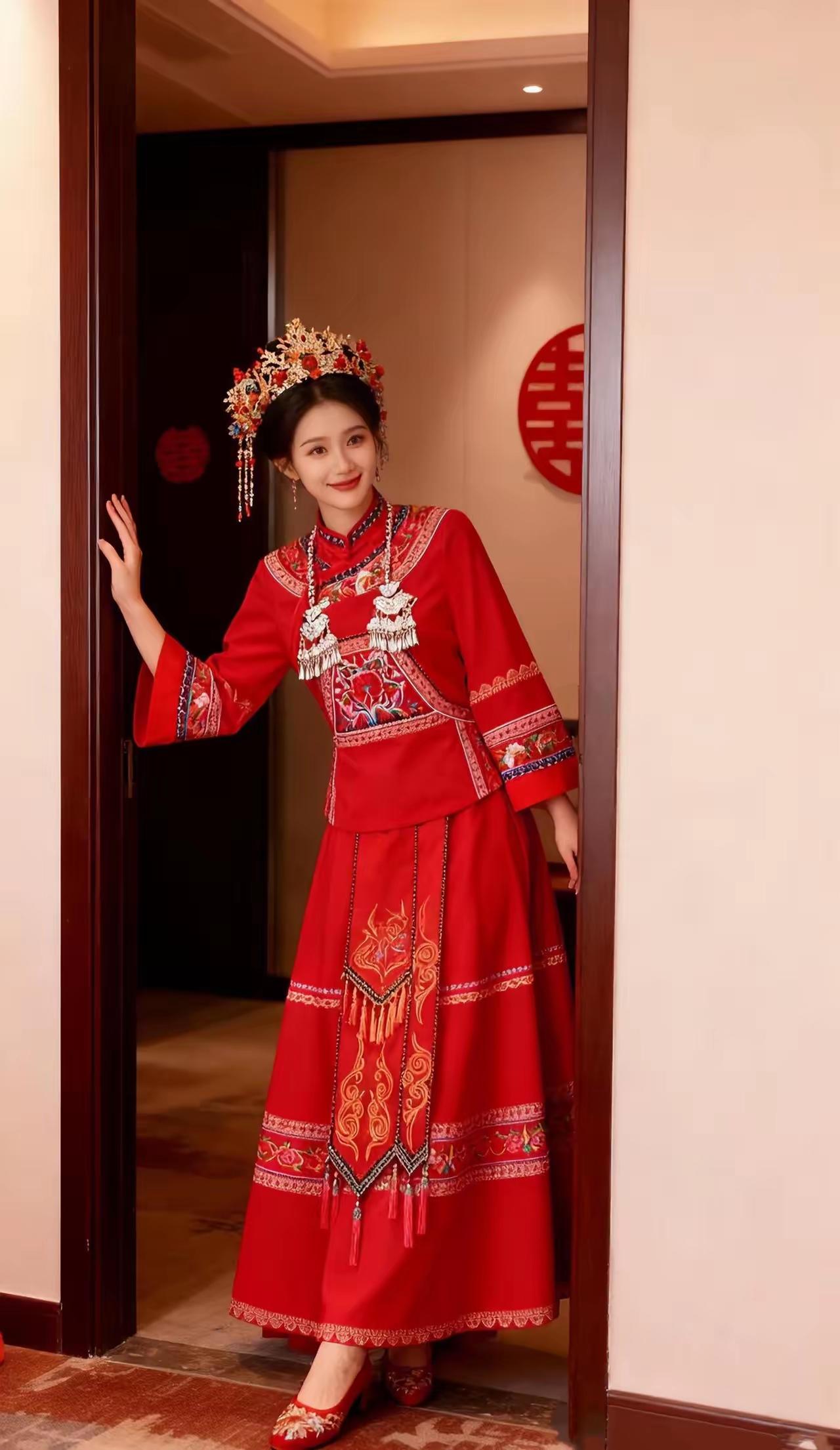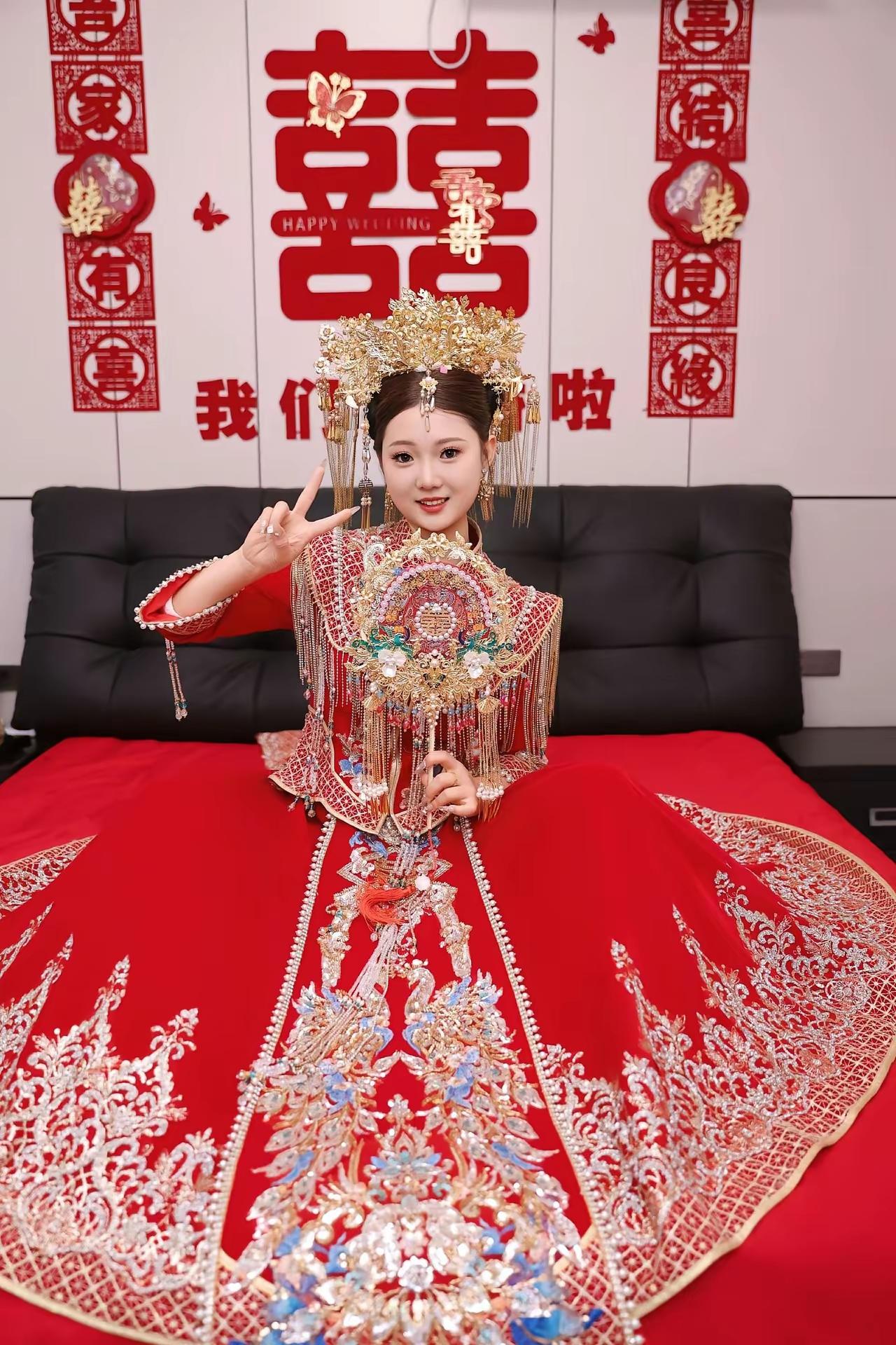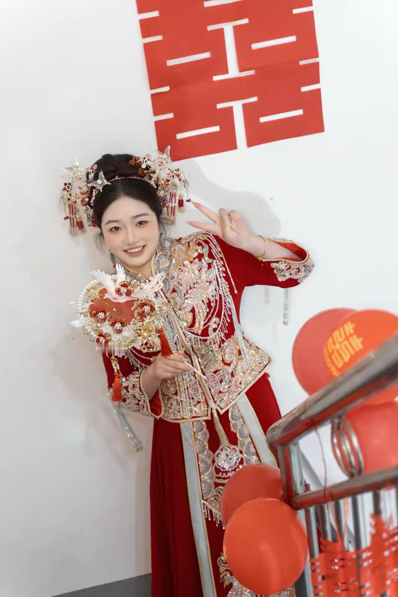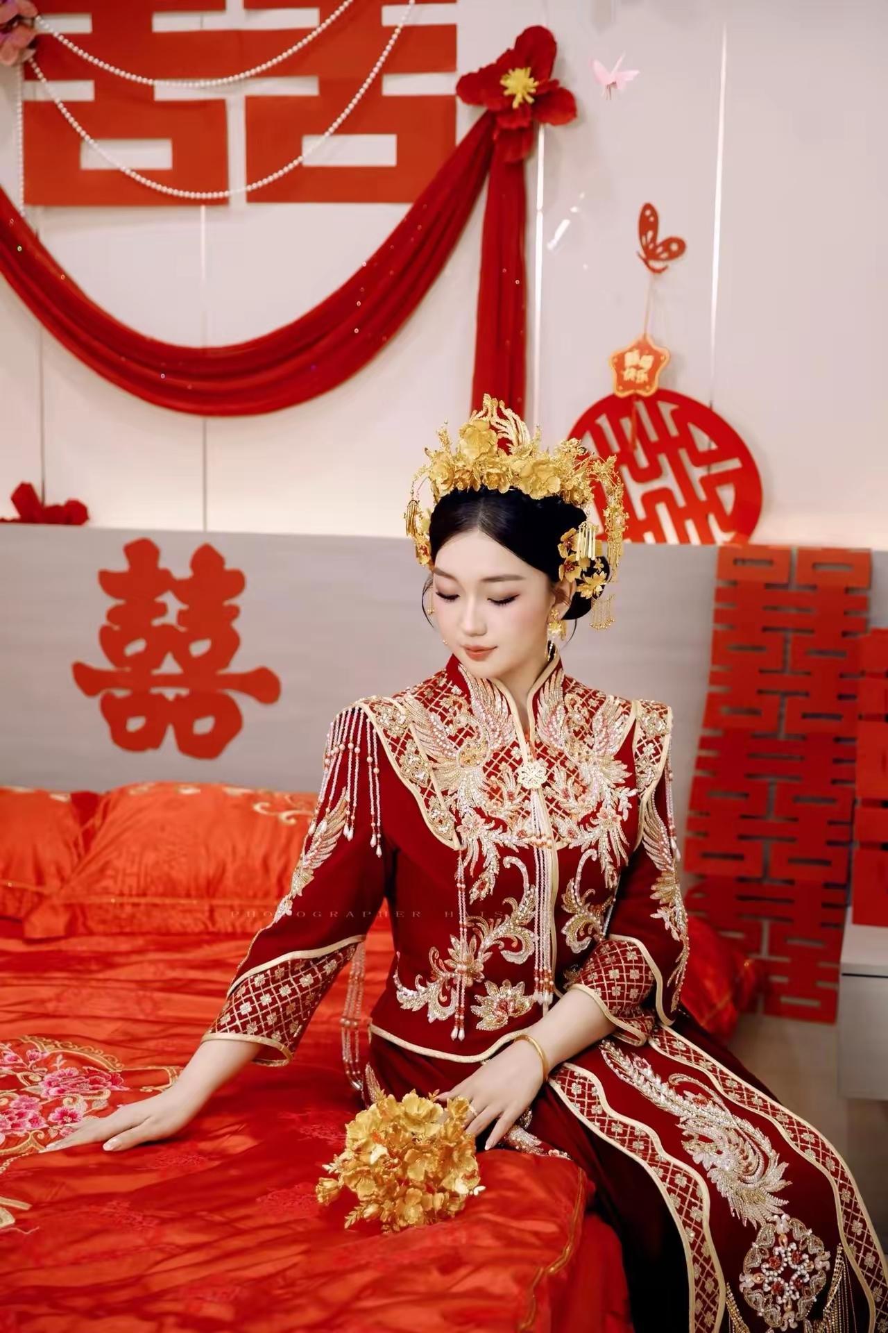 这位美女穿着华丽的礼服,看起来非常惊艳。