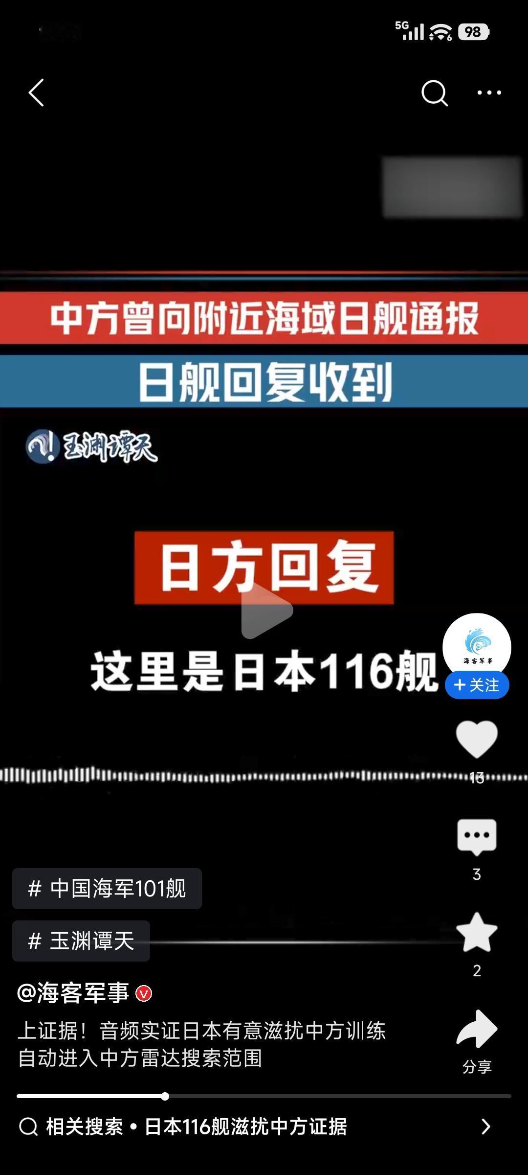 日方这操作真是太“秀”了。12月6号,辽宁舰提前跟日本“照月”号通报舰载机训练时间、地点等信息,可下午就有两架日本F - 15战机故意闯进训练空域,最近时离我方舰载机不到50公里。 事后日本还嚷嚷遭到中方雷达锁定照射,却拿不出电子信号证据。现代战机雷达探测距离远,F - 15主动飞到50公里内,进入我方雷达范围再正常不过。而且中方事先公布训练区域,日本无权擅自闯入。这几年日本总干这种事,航母出海它就派飞机跟踪炒作,无非是想收集情报、试探底线,真够让人不齿的!