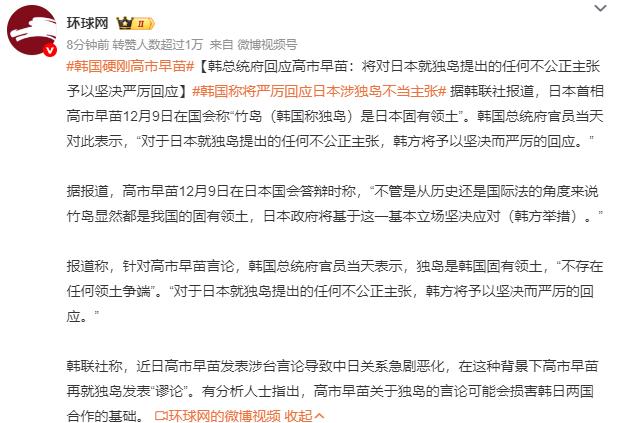 高市又挑衅韩国了!韩总统府回怼高市:将对日本就独岛提出的任何不公正主张予以坚决严厉回应。 看来高市真是越来越肆意妄为了,在咱们这儿吃瘪后,又开始挑衅韩国了,原来高市在昨天的国会答辩时称,坚称独岛是日本领土,随后韩国总统府也立即做出回应,坚决严厉回应。不得不说高市现在越来越疯狂了,在我们这儿没有讨到好处之后,开始盯上韩国了,可是人家韩国也是不好惹的啊!虽然在尹锡悦的时候韩国和日本走的很近,可是现在是李在明领导下,李在明大局意识比尹锡悦要高出很多。不得不说高市在我们这儿还没有得到解决,又得罪韩国了,接下来高市的路越走越狭窄了,可以说高市几乎没有任何底牌了。欺负不过我们,又开始打韩国的主意了,接下来就等着下台吧!