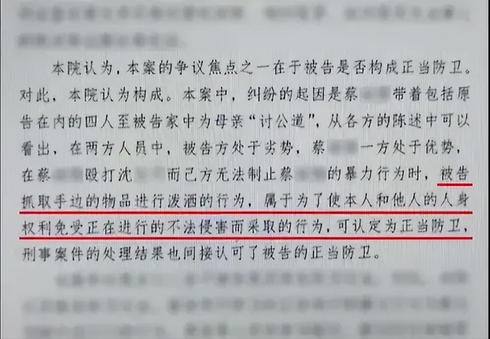 2021年,上海,一外甥带5人上门,对舅舅进行围殴,舅妈激愤之下,拿起一瓶强腐蚀性液体,直接泼向一男子,男子当即痛苦惨叫,连滚带爬逃跑,事后男子全身20%被烧伤,造成10级伤残,舅妈也被刑拘,可舅妈认为是正当防卫,法院2次判决亮了!(文中人物均为化名) 王月和丈夫陈俊结婚多年,两人性格都偏温和,平日里和邻里相处和睦,从未与人发生过激烈争执。陈俊有个外甥叫李伟,从小就比较叛逆,长大后更是游手好闲,经常因为琐事和家人起冲突。 这次矛盾的根源,是家里的动迁事宜,李伟觉得舅舅一家多分了动迁利益,心里一直耿耿于怀,多次上门理论都被陈俊夫妇耐心劝解,可他始终不依不饶。 事发当天下午,李伟没有提前打招呼,带着 5 个陌生男子直接冲到了陈俊家门口。陈俊打开门后,还没来得及询问来意,李伟就率先动手,一拳打在陈俊的胸口。 随后,他带来的 5 个人也一拥而上,将陈俊围在中间拳打脚踢。陈俊今年已经 50 多岁,身体底子本就一般,面对 6 个年轻力壮的男子,根本没有还手之力,只能抱着头蜷缩在地上,任由对方殴打。 王月听到动静从厨房跑出来,看到丈夫被围殴的场景,立刻上前试图拉开众人。可她一个女人的力量太过微薄,不仅没能阻止,还被其中一名男子推搡在地。 看着丈夫被打得不断呻吟,自己又无力阻止,王月的情绪瞬间失控。她环顾四周,看到墙角放着一瓶用来处理家具的脱漆剂,这是之前装修剩下的,具有强腐蚀性。情急之下,王月爬起来抓起那瓶脱漆剂,朝着围殴丈夫最凶的一名男子猛泼过去。 脱漆剂接触到皮肤的瞬间,那名男子就发出了撕心裂肺的惨叫,身上的衣服很快被腐蚀出破洞,皮肤也开始红肿起泡。 其他几人见状都吓傻了,殴打陈俊的动作也停了下来。被泼到的男子疼得在地上打滚,随后连滚带爬地跑出了房门,李伟和另外 4 人也赶紧跟着撤离,临走时还不忘放下几句威胁的狠话。 冲突结束后,王月立刻拨打了 120 和 110。陈俊被送往医院检查,身上多处软组织挫伤,还有轻微的骨折。而被脱漆剂泼到的男子,伤势更为严重,经医生诊断,全身 20% 的皮肤被烧伤,达到了 10 级伤残,后续需要长期治疗和康复。 民警赶到现场后,根据双方的陈述和现场勘查,将王月依法刑事拘留,因为她的行为造成了他人重伤。 王月被刑拘后,始终认为自己的行为是正当防卫。案件被移送检察机关后,检方经过审查,认为王月的行为属于正当防卫,不予追究刑事责任,随后王月被释放。 本以为事情就此告一段落,没想到几个月后,被烧伤的男子将王月告上了法庭,要求她赔偿医疗费、误工费等各项经济损失。一审法院经过审理,判决王月承担 35% 的赔偿责任。这个结果让王月无法接受,她坚持认为自己没有过错,于是提起了上诉。 法院受理上诉后,对案件进行了全面审查。法院认为,王月在丈夫遭受 6 人围殴、自身也被推搡的情况下,面临着现实、紧迫的人身危险,其采取泼洒脱漆剂的行为,目的是制止正在进行的不法侵害,符合正当防卫的构成要件。 同时,考虑到当时的紧急情况,王月没有更多选择,其防卫行为并未超过必要限度。最终,二审法院作出改判,撤销一审判决,认定王月的行为构成正当防卫,无需承担民事赔偿责任。 这起案件的两次判决引发了全网热议,网友们纷纷发表自己的看法。 有网友留言:“舅舅被 6 人群殴,舅妈反击完全是被逼无奈,二审改判无罪太对了,法不能向不法让步。” 也有网友表示:“虽然理解舅妈的心情,但用强腐蚀性液体确实太危险,还好法院综合考量了当时的情况。” 还有网友说:“家庭矛盾应该好好沟通,外甥带人上门打人本身就不对,付出代价也是活该。” 这起事件给所有人都敲响了警钟。遇到家庭矛盾时,一定要保持冷静,通过合法途径解决问题,切勿采取暴力手段,否则不仅解决不了问题,还可能触犯法律。 同时,在面临不法侵害时,正当防卫是法律赋予公民的权利,但防卫行为必须在必要限度内,避免造成不必要的伤害。无论是施暴者还是防卫者,都应该对法律怀有敬畏之心,学会用法律武器保护自己的合法权益。 那么,对于这起案件,你认为舅妈的行为是否属于正当防卫?遇到类似情况,你会如何应对?欢迎在评论区留下你的看法。