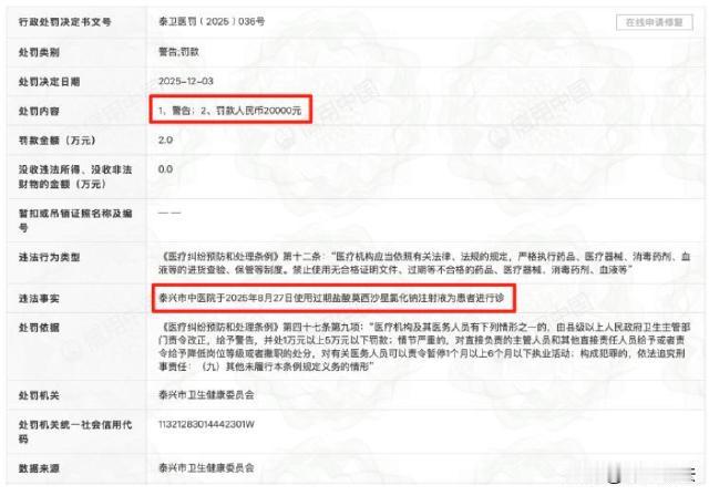 江苏泰兴,王女士因为肺炎去医院输液,输液过程中她发现药品已经过期了一个半月,她赶紧喊来护士。谁知道护士过来直接就把药品收走了,并且快速给理掉。医院给王女士的答复是:过期药物对身体没有影响。但是后期王女士身体出现不适,医院坚称:就是你自己身体的缘故,别想太多了。 据上游新闻12月8日报道称,王女士已经将这件事向上汇报,并且及时作出投诉。但是投诉后相关部门没有给出答复,王女士决定找媒体曝光。曝光之后、事件发酵,相关部门才给这家医院作出2万元发罚款和警告处罚。 王女士因为最近感染了肺炎,到医院就诊的她被安排住院。期间医院给她安排了挂水,一切准备就绪之后,王女士则静静等待输液结束。 输液过程中,王女士无意间瞥到输液袋子上的日期——生产日期:2023年7月14日;有效日期2025年7月13日。 看到这个时间之后,王女士当下就掐指一算,天哪,这个药品过期了啊,已经整整过期一个半月了。 王女士立刻喊来护士,叫停了这次挂水。她也跟护士沟通了这件事,但是护士并没有给出任何答复,而是快速的就把药品的袋子给取走了,并且到后面工作间直接就给处理掉了。 但是幸亏王女士将这一切都拍摄下来,手里也作了记录。王女士立刻跟医院方取得了联系,然而院方给到的答复是:过期药品对人体没有任何影响的,不要担心。 身体被输入了过期的药品,但是医院方却不肯担责,一直狡辩说不会有问题。这样的说法正确吗?根据王女士描述,接下来的一段时间内,她身体确实产生了问题。 输入过期药品之后,王女士就出现了发热、胸闷、心悸的情况,她把自己的症状告诉给了医院,但是经过一番沟通,医院给出的答复是:是你心里压力太大造成,而且你本来就感染上肺炎,这些都是你身体原本的并发症。 对于医院的态度,王女士无法接受。当时,她就把这一切整理出了一份资料,向相关部门投诉。然而,她一直没有等到处理结果。 无奈,王女士又把这件事向媒体阐述,请求媒体来帮忙曝光。当媒体把王女士的遭遇给发布了之后,相关投诉部门才引起了重视,将处理结果告知给了王女士。 王女士称,这家医院被罚款2万元,并且处以警告。这就是最终的处理结果。然而,这仅仅只是对医院的处理,但是自己的身体带来了伤害,医院不仅不承认,将来自己要是面临更为严重的病症,这又该如何应对呢? 一时间,王女士感觉自己陷入僵局,没谁能给自己一个说法。 1.医院里的输液药品已经过期,并且还继续给病人用药,此举是否构成违法呢? 第一,相关机构以及工作人员涉嫌违规、违法。 根据《药品管理法》规定,过期药物需要按照规定处理,属于劣药,如果有相关部门继续使用劣药,则构成性质非常严重的违法。 随意给患者使用过期药品,此举性质非常严重,泰兴的相关机构以及工作人员已经涉嫌严重违法。 第二、如果对他人造成人身伤害,可能触犯刑法。 根据《刑法》规定,使用过期药品行为非常恶劣,处罚也非常严厉。相关部门会没收药品、并且没收违法所得,处以货值金额十倍以上、二十倍以下罚款。如果因为过期药品造成患者人身损害,相关机构还将要承担民事赔偿责任,情节严重者则构成犯罪,相关人员需要倍追究刑事责任。 从这条法令来看,医院以及工作人员给王女士使用过期药品,此举非常恶劣,不仅需要面对刑事处罚,还需要承担侵权赔偿。目前这家机构被处以罚款以及警告,而王女士表示身体已经出现不良症状,如果引发更为严重的后果,相关涉事人员还需要被刑事判刑。 2.如果医院使用过期药品,患者如何维权? 根据《消费者权益保护法》规定,及时固定证据,如果导致自己人身损害,有权通过法律途径索赔。人身赔偿包括医疗费、护理费、交通费、误工费等实际支出,如果造成严重精神损害,还可以主张精神损害抚慰金。 王女士后续可以继续维权,时刻关注自身症状变化,保留就医资料、过期药品的相关记录等,后期可以走法律途径上诉维权。 对此,大家都怎么看呢?