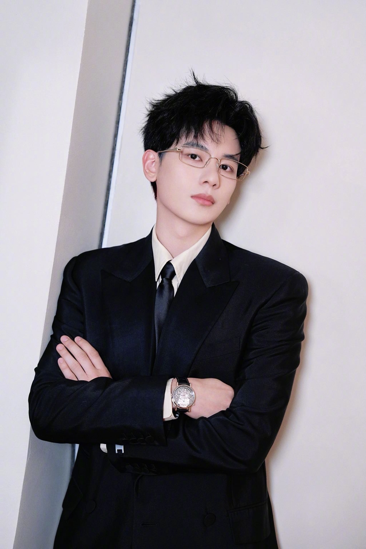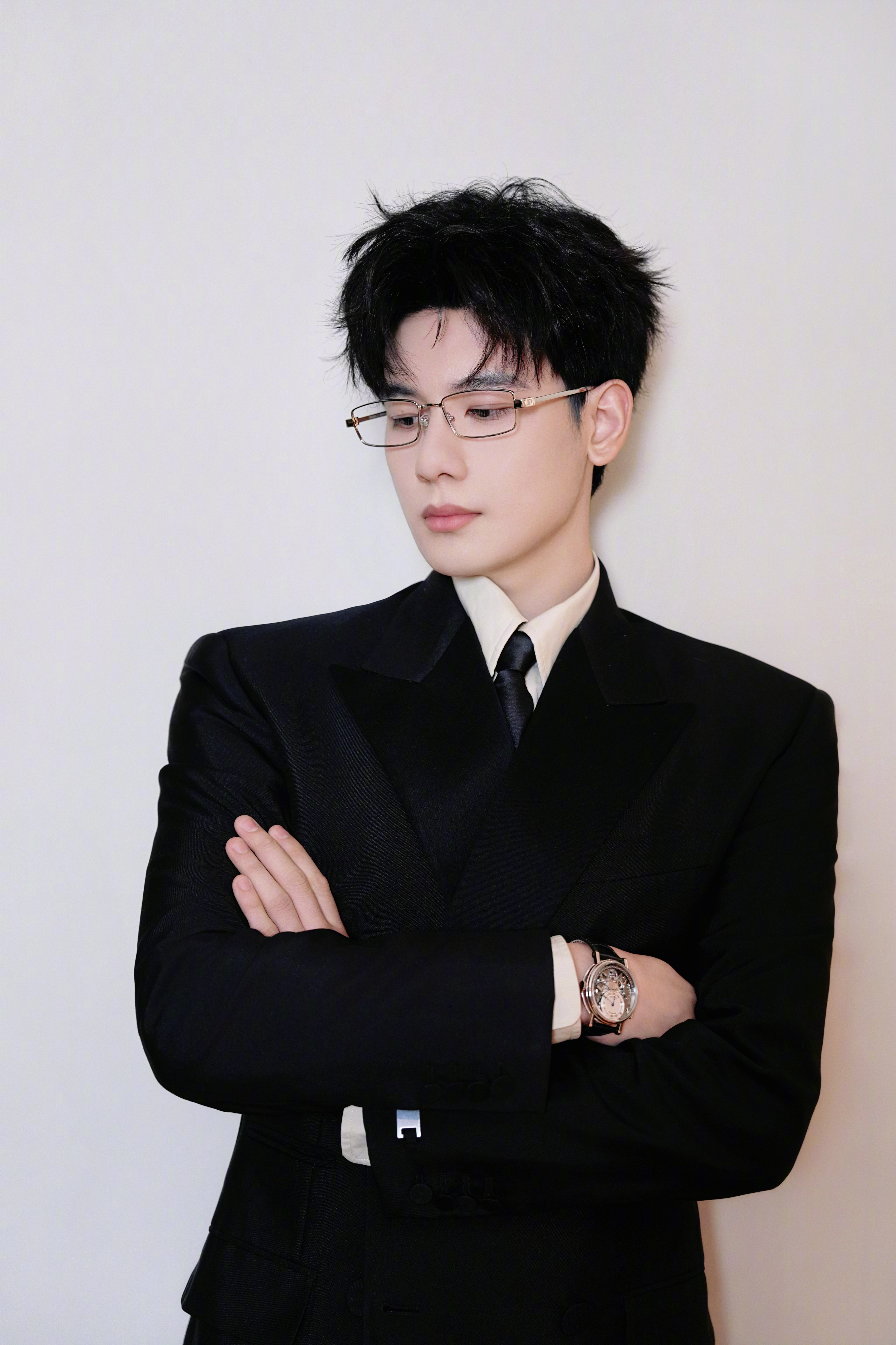胡先煦的新剧《即刻上场》剧宣写真。黑色西装内搭米黄色衬衫,佩戴金丝边眼镜和宝玑Tradition传世系列7597腕表⌚️,虽然还有点稚气未脱,但已有了睿智的绅士气质魅力。很适合演很正面的人物角色啊!珠宝与时计之美风格大赏