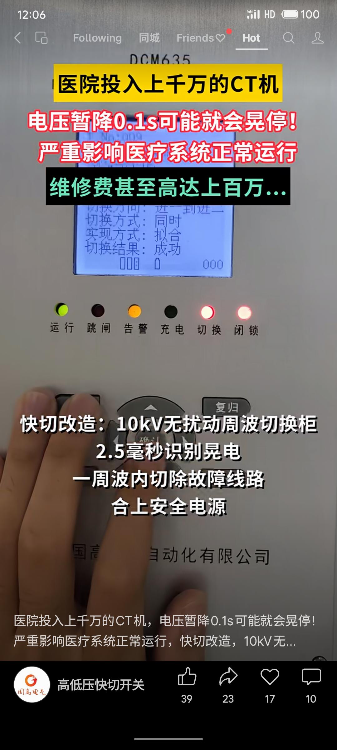高端CT等精密医疗设备对电压波动极为敏感,瞬间的“晃电”即可导致停机,影响诊疗并造成巨额损失。而毫秒级电源“快切”技术,是保障医疗供电连续性与设备安全稳定运行的关键解决方案。