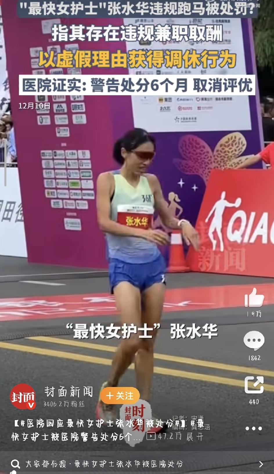 最近医疗圈的大热点,当属“最快女护士”张水华被医院处分的事了。12月9号晚上,一份福建医科大学附属第一医院的处理决定在网上传得沸沸扬扬,第二天一早就被医院实锤,说文件是真的,内容也完全属实,这波操作直接让网友们炸开了锅。 可能有人还不太熟悉张水华,她之前可是凭着马拉松成绩火出圈的。作为公立医院的护士,她跑马拉松特别厉害,50天里参加5场比赛拿了20多万奖金,还成了361度的代言人,“最快女护士”的标签让她圈了不少粉。但真正的争议早在8月底就埋下了,当时她在哈尔滨马拉松夺冠后,对着镜头哭诉希望领导支持调休参加比赛,这事当时就引发了讨论,有人心疼她兼顾工作和爱好不易,也有同行吐槽她频繁调休影响科室运转。 这次医院的处分决定,直接列出了两大违规事实。第一个是违规兼职取酬,她和361度签了代言合同还拿了报酬,但压根没按医院规定提前报批。要知道公立医院职工做商业兼职,报备可是硬性要求,没走流程就私下接单,这明显触碰了规则红线,后来361度也因为之前的争议跟她解了约。 更让人诟病的是第二个问题——虚假调休。为了跑马拉松,张水华多次申请调班,早就影响到科室正常排班了。最关键的是11月1号,她用虚假理由申请了第二天的调休,结果转头就去湖北宜昌跑马拉松了。这种欺瞒行为不仅违背了护士的职业道德,还让科室不得不临时调整人力,其他同事只能被迫多扛活,额外增加了不少负担,这也违反了她和医院签的聘用合同。 医院最终认定,她的这些行为破坏了正常工作秩序,造成了恶劣影响,所以给出了两项处分:一是警告处分6个月,期间不能晋升到更高岗位;二是取消2025年度的评优资格。消息一出,网友们的看法也分成了两派,有人觉得处分合理,护士岗位关乎患者安危,规则不能当摆设;也有人觉得可惜,毕竟她在马拉松赛场的成绩确实亮眼,只是没把握好工作和爱好的边界。 其实这事的核心从来不是“护士能不能跑马拉松”,而是能不能守住职业底线。张水华在赛道上的拼搏值得肯定,但作为公立医院的工作人员,违规兼职不报备、用虚假理由骗调休,确实违背了职业准则。职场里每个人都有自己的爱好,但前提是不能影响本职工作,更不能突破规则红线,这大概就是这件事给所有人的提醒吧。 来源:封面新闻