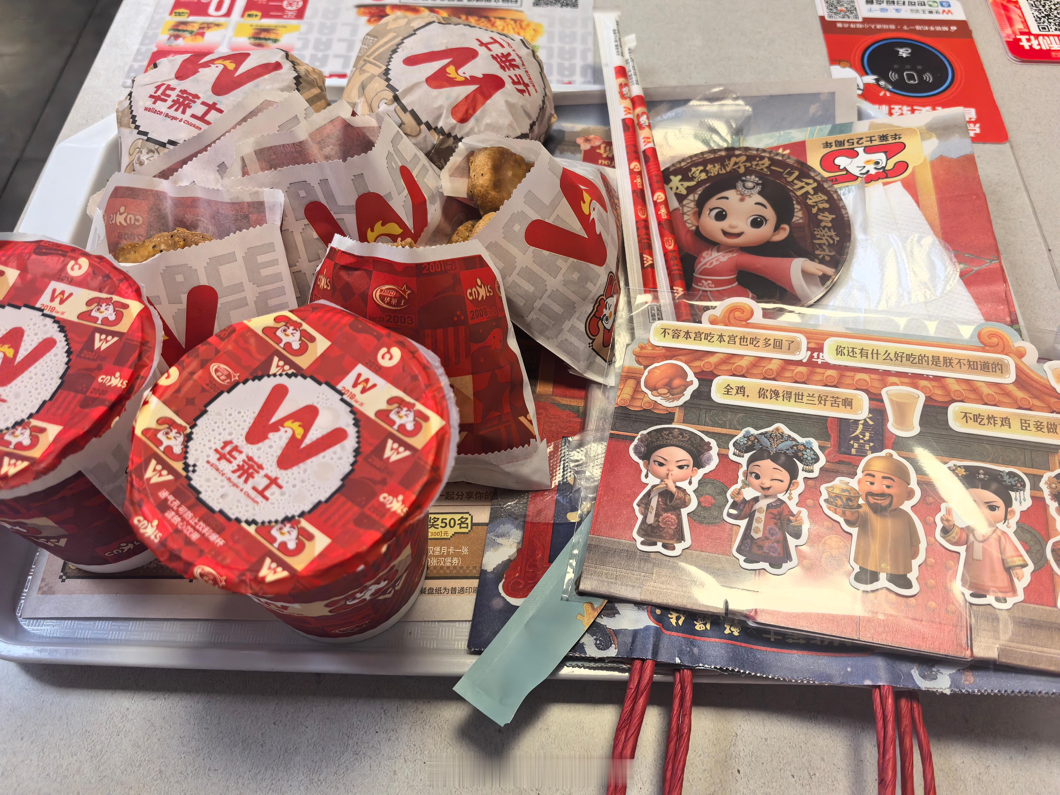 华妃为朕花心思了 华莱士&甄嬛传联名来了!!这次华妃真的用心了~广式元气草本全鸡+薯薯小甜心蛋挞,经典搭配不出错!✨但更让我心动的是这次超有诚意的周边——六宫茶事杯垫、剧情工艺贴纸,质感真的绝!还有那套《甄嬛传》典藏麻将,精致到想立刻收藏~