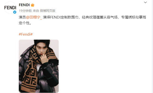 Fendi认领田栩宁演绎定制款围巾 田栩宁Fendi适配度 田栩宁Fendi适配度,时尚表现力满分阿栩和品牌的时尚适配度拉满了,Fendi认领田栩宁演绎定制款围巾,是时候和我们阿栩的再次合作的见面啦~田栩宁Fendi合作