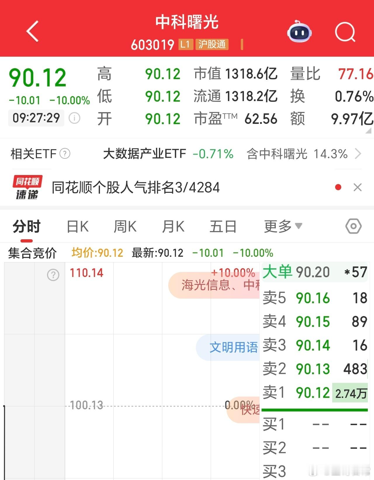 开盘太弱,4058家待涨,高达1308家红盘开。中科曙光一字板跌停,并购重组的大
