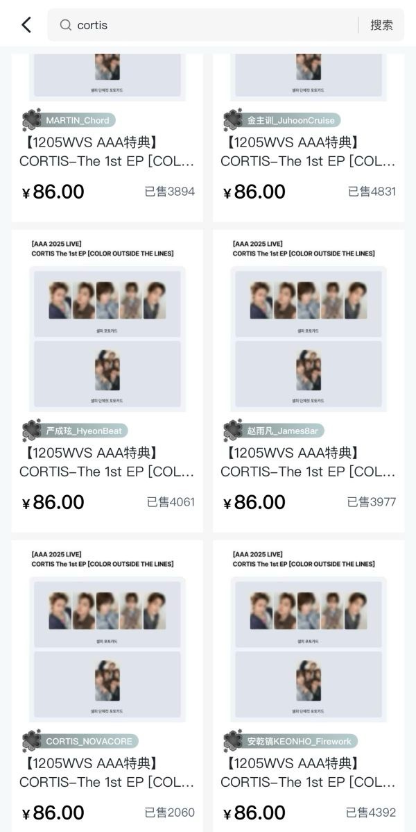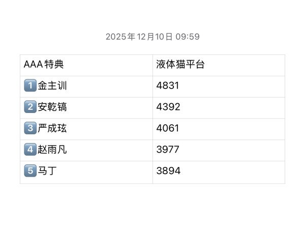 Cortis 最新AAA特典拉表 1️⃣金主训 48312️⃣安乾镐 43923️⃣严成玹 40614️⃣赵雨凡 39775️⃣Martin 3894