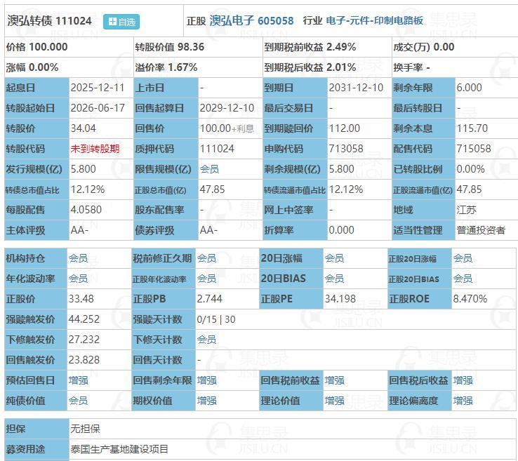 12月11日澳弘转债、神宇转债申购。根据当前市场情绪及可转债交易行情: 澳弘转债上市时预计会有39%的溢价,预估上市价值为137元。澳弘转债为AA-级转债,转股价值和纯债价值较低,正股澳弘电子前三季度盈利能力较好。本次发行规模较小,上市首日预计会有一定的炒作行情,盈利预期较好,我会顶额申购。 神宇转债上市时预计会有45%的溢价,预估上市价值为140元。神宇转债为AA-级转债,转股价值和纯债价值较低。本次发行规模较小,上市首日预计会有一定的炒作行情,盈利预期较好,我会顶额申购。