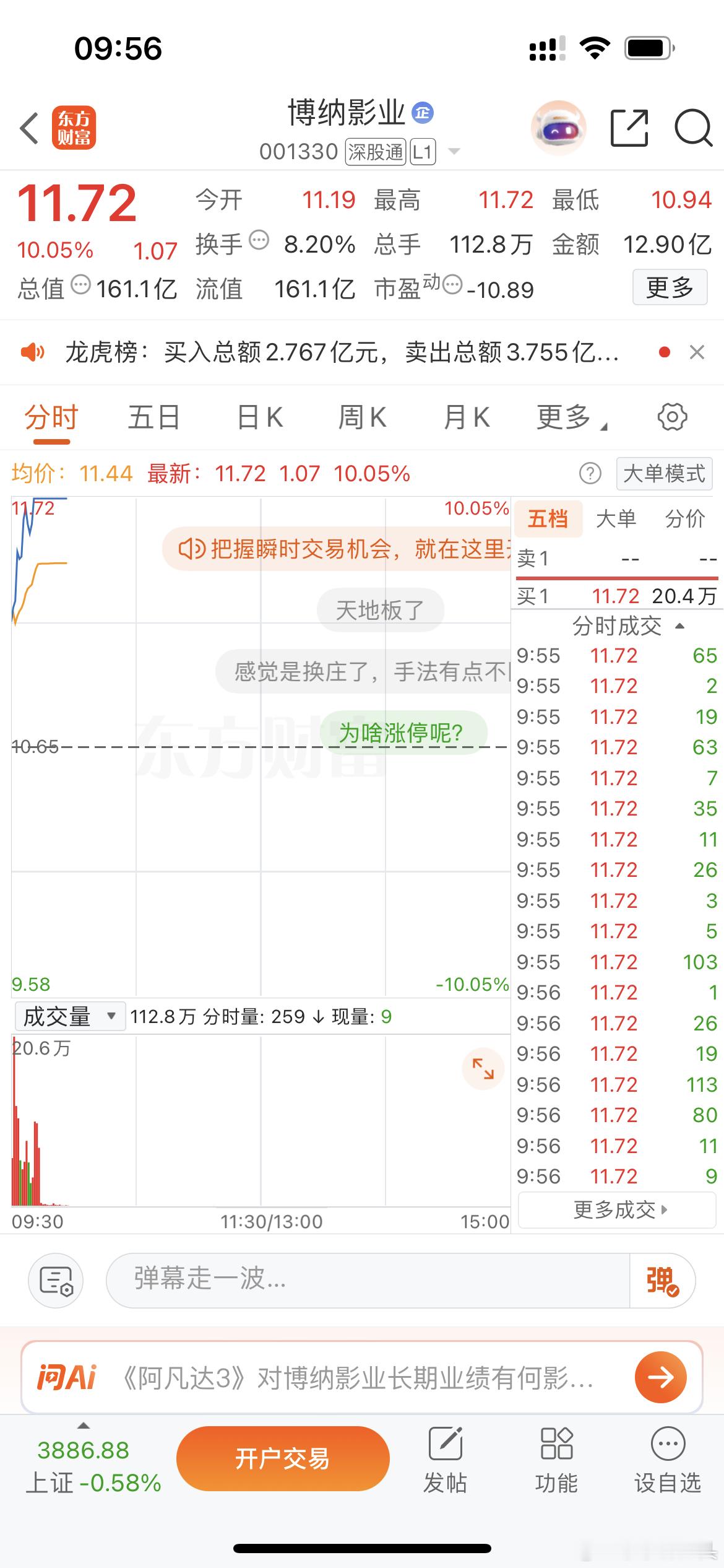 话不多说,博纳影业继续涨停,兄弟朋友们我只要500个赞!