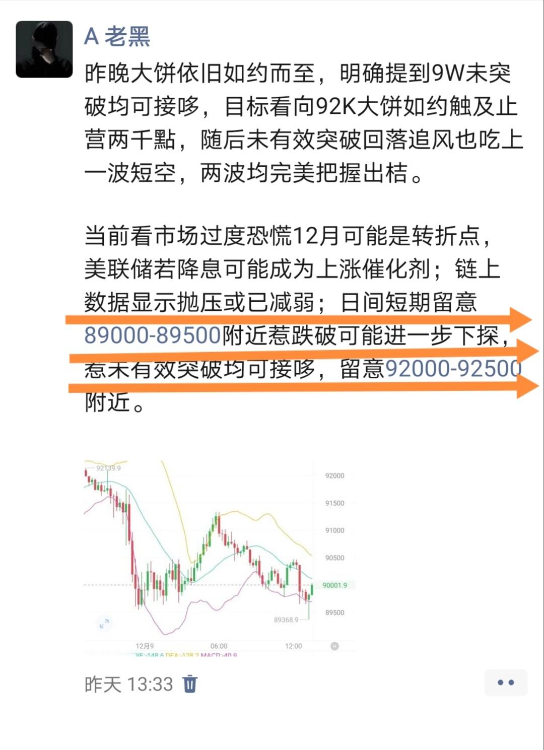 昨日再度如约而至,布局中也明确提醒89K关键位置,不破均可接哆目标92K上方,大饼也是精准如期触及目标,不论短线还是波段都还是很乐观。当前看隔夜大饼受向上突破了94K后回落。小时级别虽出现短暂回踩,处于拉伸后的回调整理蓄力,后续仍有进一步走高的可能,此时留意92K惹未有效跌破均可继续上看。