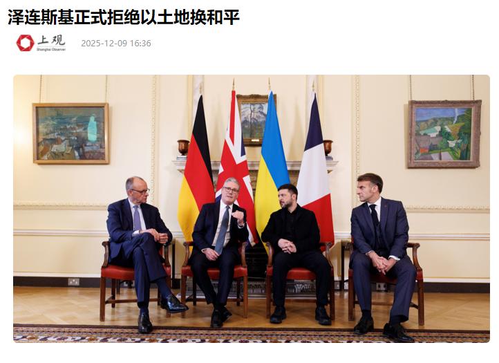 泽连斯基够勇! 当地时间12月8日,泽连斯基明确拒绝了特朗普的28条,反对向俄罗斯割让领土,如此一来,这一仗就得继续打下去,而特朗普想立即结束战争的愿望也就得泡汤。 作出这一决定之前,泽连斯基在伦敦与英国、法国、德国领导人共同讨论了特朗普的28条,很显然他应该是得到欧洲3个强国的支持,否则乌克兰根本无力继续战争,这样的话俄乌这一仗就又有看头了。 更实在的是,欧洲已经在推进用俄罗斯冻结资产支援乌克兰重建,还承诺加强乌能源设施防御,这些可不是空头支票,要知道乌克兰2024-2025年的武器供应里,欧洲占比超过六成,仅德国就向乌交付了数百辆主战坦克和防空系统,英国的巡航导弹、法国的凯撒火炮更是前线常用的硬家伙。 特朗普大概没料到,自己一顿极限施压,没压服泽连斯基,反倒先把欧洲惹毛了,波兰直接抱怨美方制定方案时“完全没征求欧洲意见”,这波操作让美国的“盟主范儿”碎了一地。 而特朗普的28条之所以被泽连斯基果断拒绝,核心就是触了“割地”的红线,这份被美媒披露的方案里,明晃晃要求乌克兰从顿涅茨克部分地区撤军,还得限制乌军规模在60万人以内,甚至要放弃加入北约的诉求。 更耐人寻味的是,方案里藏着美国的小算盘,要把1000亿美元俄罗斯冻结资产拿去搞重建投资,美国还要分走50%利润,泽连斯基心里门儿清,这哪儿是和平协议,分明是让乌克兰用领土换“被收割”的资格,更何况乌克兰民调摆得明明白白,83.3%的民众反对削减乌军规模,几乎没人愿意放弃领土,真要是签了这协议,泽连斯基在国内怕是先站不住脚。 而且,特朗普大概忘了,欧洲才是俄乌战争的直接利益相关方,怎么可能任由美国单方面定规矩,他给乌克兰设27日的最后期限,放话“要么接受要么停援”,结果泽连斯基转头就和欧洲抱团,甚至表示愿意在获得安全保障的前提下举行选举,既给了特朗普台阶,又没松核心底线。 更讽刺的是,特朗普方案里提的“美俄能源合作”“解除对俄制裁”,刚好戳中欧洲的痛点——欧洲早就因为俄乌冲突能源价格暴涨,怎么可能同意让俄罗斯再拿捏能源命脉,这波博弈下来,特朗普想靠单边操作结束战争的算盘,算是彻底打空了。 其实,泽连斯基这波硬刚,表面看是对着特朗普,实则是摸准了欧洲的,。欧洲需要乌克兰顶住俄罗斯,乌克兰需要欧洲的枪炮和资金,这种相互绑定让双方都没退路,而特朗普的和平方案,本质上是想把欧洲的安全问题当成自己的选举筹码,既想快速抽身,又想从中捞好处,可惜没算到泽连斯基敢掀桌子,更没算到欧洲会联手拆台。 说到底,泽连斯基的这波“勇”,是清醒的利益权衡后的果断,他现在知道靠特朗普的和平只会让乌克兰沦为牺牲品,而抱住欧洲的大腿、守住领土底线,才是唯一的生路,特朗普想急着“摘桃子”结束战争,却忽略了战争从来不是单方面说了算的,这就注定这场战争还得打下去。