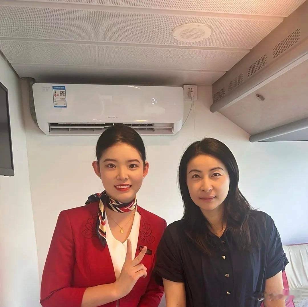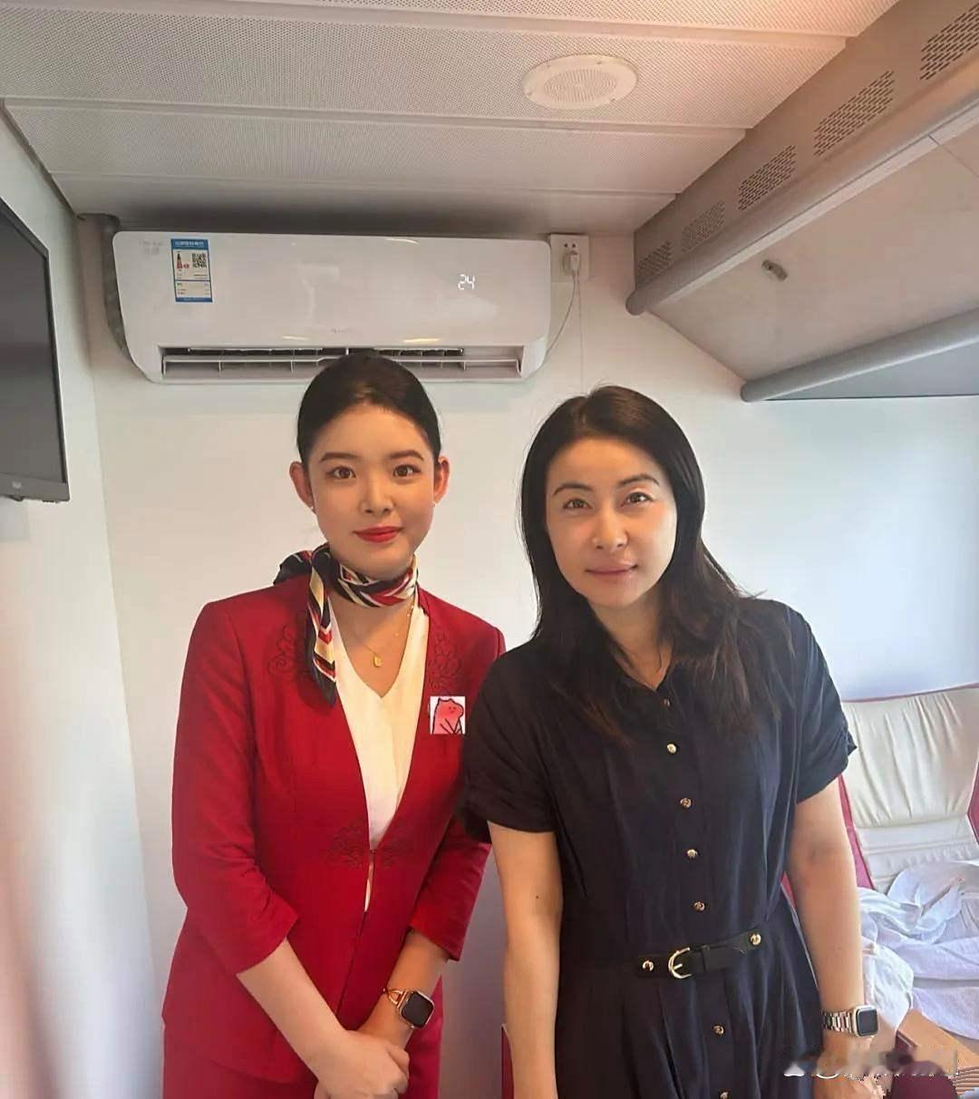 我信郭晶晶面相是凤凰啦!瞧这空姐跟郭晶晶的合影,竟感觉旁边美女空姐被比下去咯