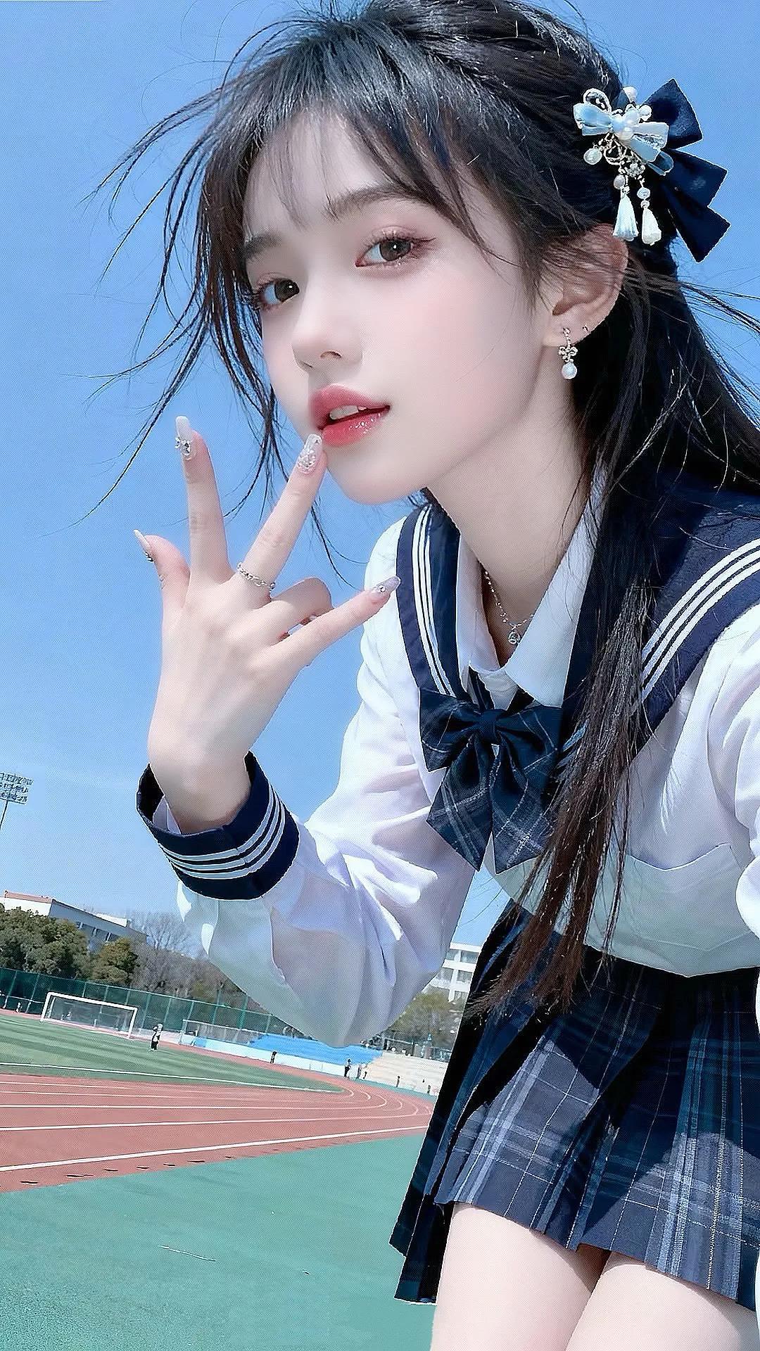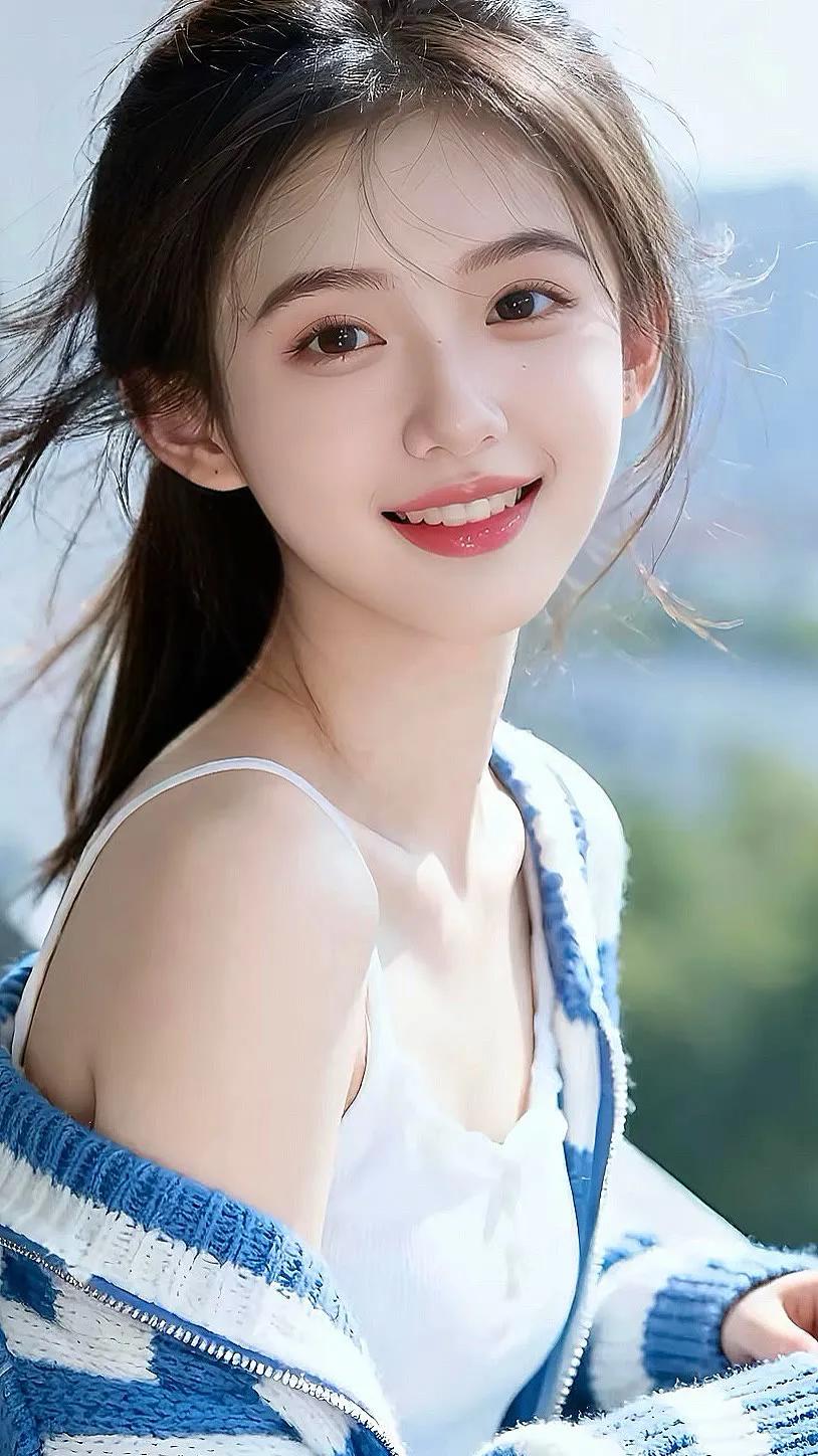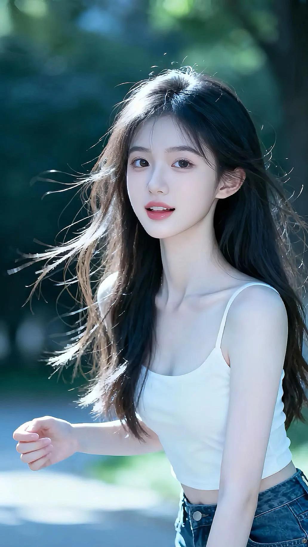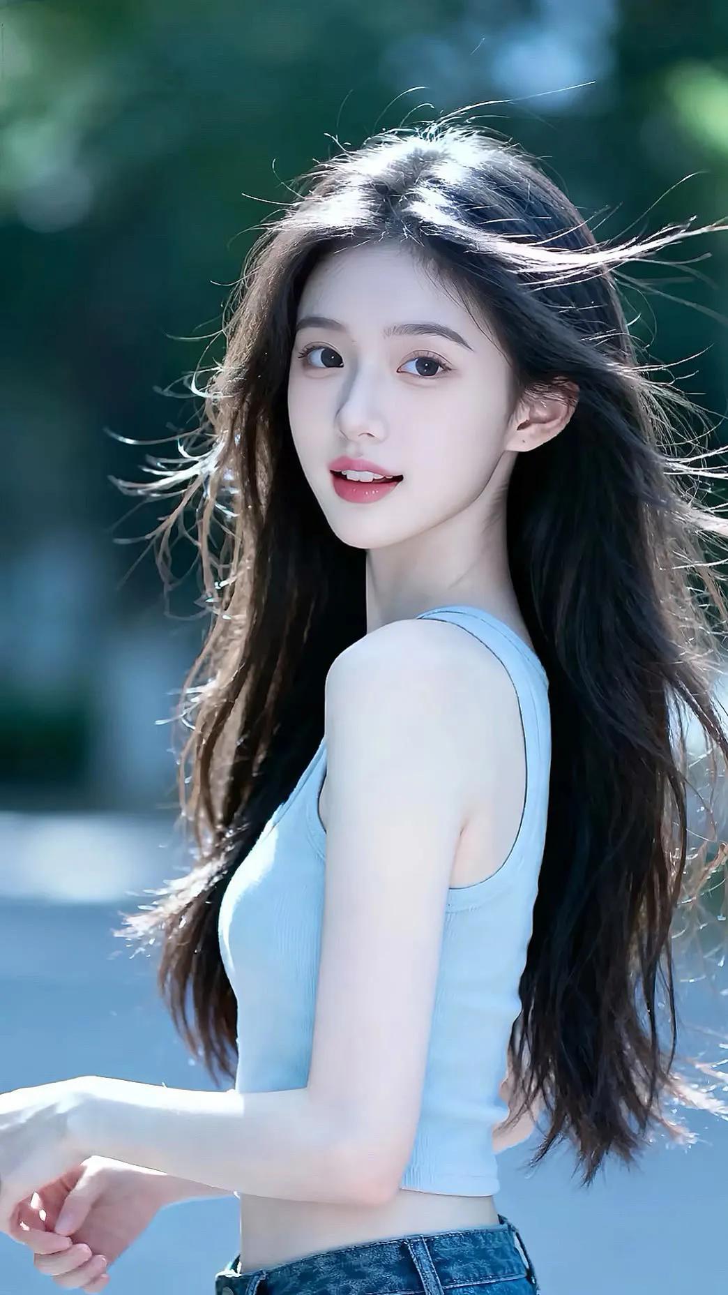 夏日清新少女,轻盈飘逸的蓝裙,自然光下的柔美瞬间。