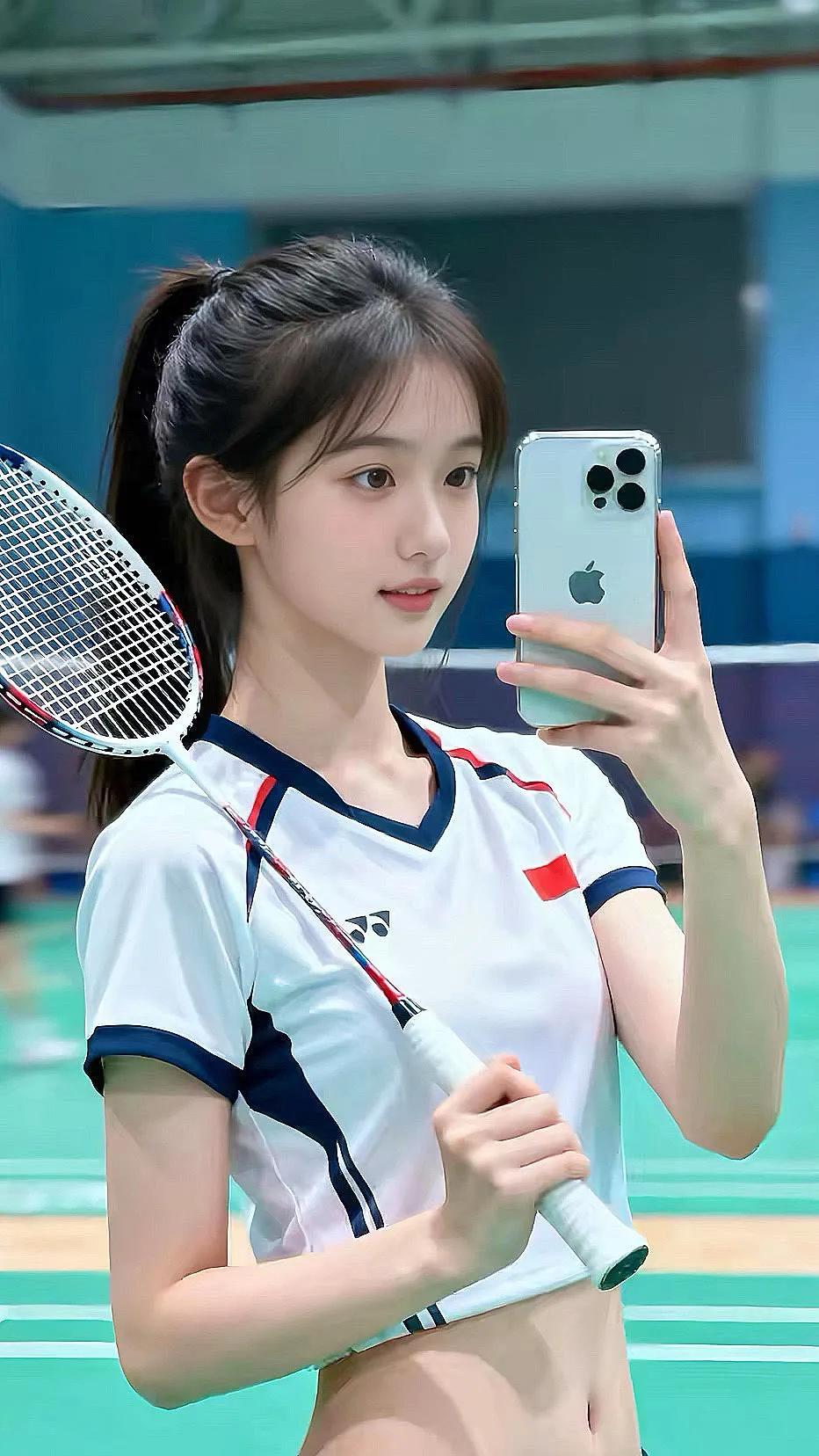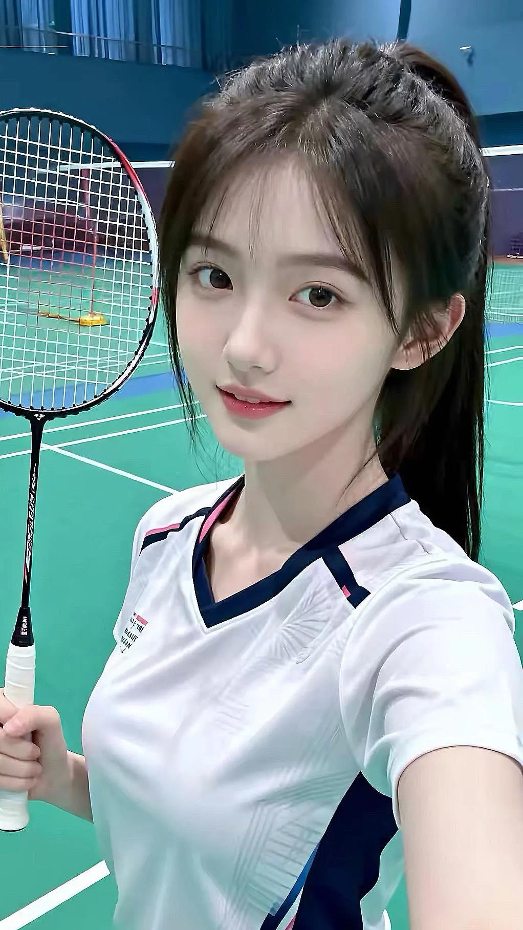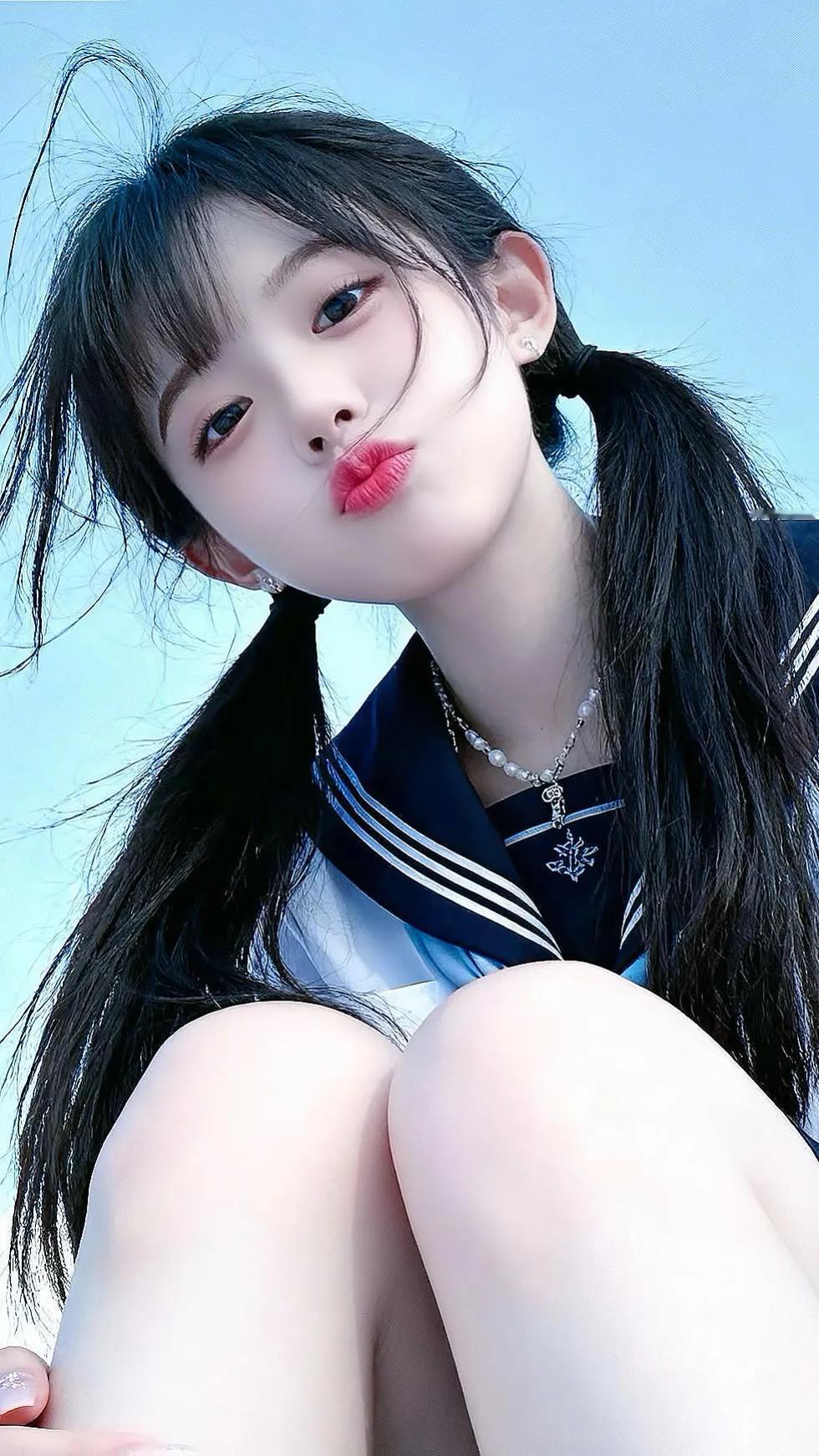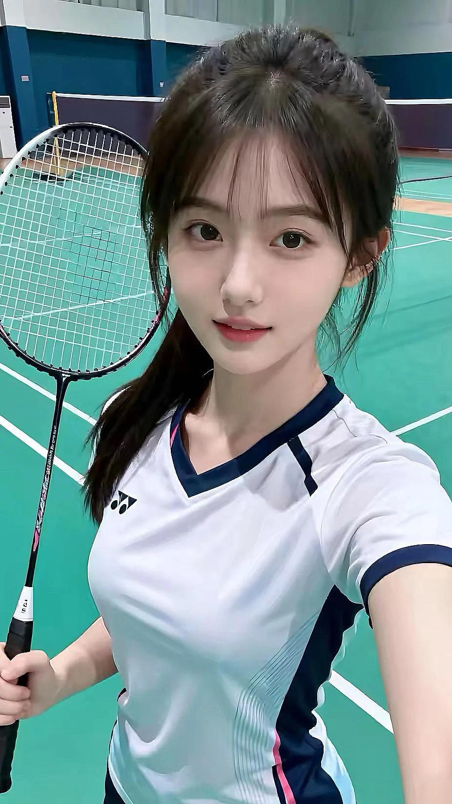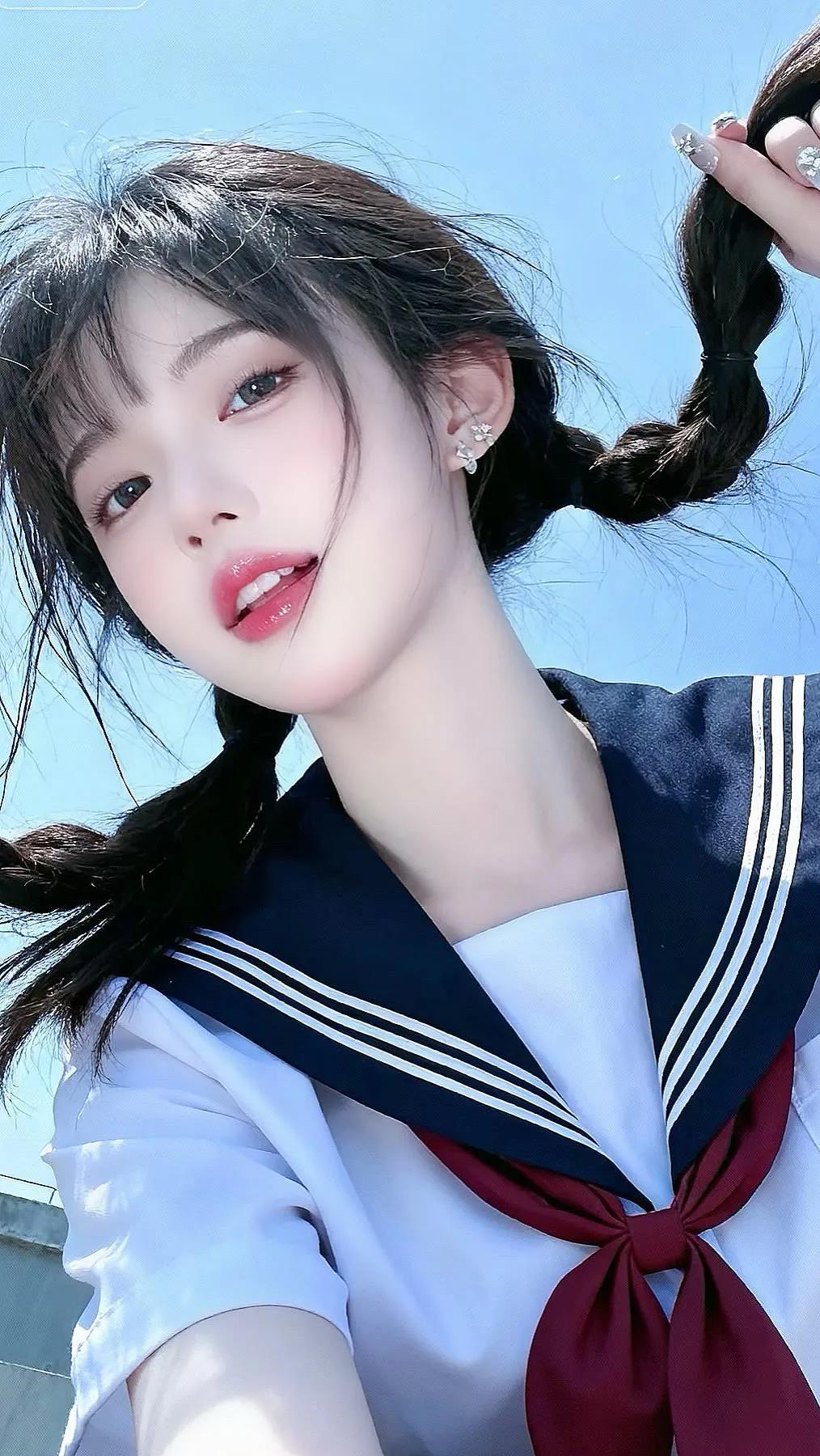 夏日清新少女,微笑弯腰,绿意盎然背景,甜美可爱!🌿😊