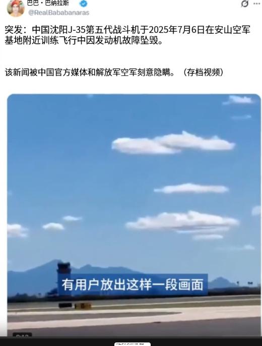 *“歼-35战斗机在鞍山附近坠毁?”近日,外网有人放出一段战斗机坠毁视频,声称是中国的歼-35,但实际上却是美国的F-35,造这种谣究竟是何居心? 最近网上有条消息挺闹心,说歼-35在鞍山附近坠毁了,还配了段战机坠毁起火的视频,连地点都说得有模有样,不少人看了都跟着揪心。 但我翻了翻权威媒体的报道,再比对视频细节,发现这纯属瞎编的谣言。 其实破绽特明显,普通人看两眼都能挑出来,最直观的就是发动机数量,视频里坠毁的战机只有一个发动机,可歼-35是标准的双发设计,两个发动机明明白白。 这么说吧,歼-35是航母舰载机,海上起降对可靠性要求极高,双发设计就是留足安全余量,这和F-35的单发设计是本质区别,根本不是一回事。 再看所谓的“坠毁地点”,更离谱,有人比对了视频里的背景地标和地形,发现那根本不是辽宁鞍山,而是美国亚利桑那州的戴维斯蒙森空军基地,也就是大名鼎鼎的“飞机坟场”。 鞍山是典型的内陆城市风貌,可视频里全是荒漠地形,还有基地特有的设施,跟鞍山压根对不上。 造谣的连换个贴合鞍山环境的素材都懒得弄,直接拿美国的事故视频改个说法就发,也太敷衍了。 敢这么明目张胆地移花接木,背后的心思可没那么简单。 看看美国F-35最近的处境就懂了,这两年坠毁事故就没断过,光是今年1月阿拉斯加就摔了一架。 事后官方调查报告说,是液压油里掺了水,低温下结冰导致起落架卡住,飞行员跟工程师通了50分钟电话求救都没解决,最后只能弹射逃生,一架价值近2亿美元的战机直接报废。 更关键的是,有官方报告明确说,F-35存在966处设计缺陷,其中110处是致命的一级缺陷,现在美军自己都开始拒收没整改好的机型。 自家战机问题缠身,反观歼-35却接连传来好消息,前不久官方刚公布,歼-35在福建舰完成了电磁弹射起降测试,成了全球首款能搞电磁弹射的第五代中型舰载机,相关生产线也公开过。 漏洞百出的“问题机”对上稳步突破的先进装备,这种对比让有些势力坐不住了。 说白了,与其好好解决自家F-35的缺陷,不如搞舆论战,把自己的坠机视频安到歼-35头上。这样既能转移民众对F-35问题的关注,又能抹黑中国军工的可靠性,算盘打得倒挺精。 更深层的原因,其实是军事领域的舆论较量,这些年中国军工进步快,从航母到隐形战机,每一步突破都让一些传统军事强国感到焦虑。 之前就有美国军方高层说歼-35“抄袭”F-35,结果被自家专家打脸,明眼人都能看出两者设计完全不同,所谓“抄袭”纯属无稽之谈。 这次造谣歼-35坠毁,本质上是这种焦虑的延续:故意制造“中国装备不可靠”的假象,既能影响其他国家对中国军工产品的信任,还想动摇国内民众的信心。 这种套路不新鲜,之前还有人造谣说别的国家偷歼-35技术,最后也被证实是瞎编。 这则谣言就是面镜子,照出了某些势力“比不过就造谣”的窘迫,大家碰到这类消息,多留个心眼,查一查权威信源,就不会被带偏了。 以上都是个人观点,对此您有什么不同的看法,可以在评论区留言讨论!!!