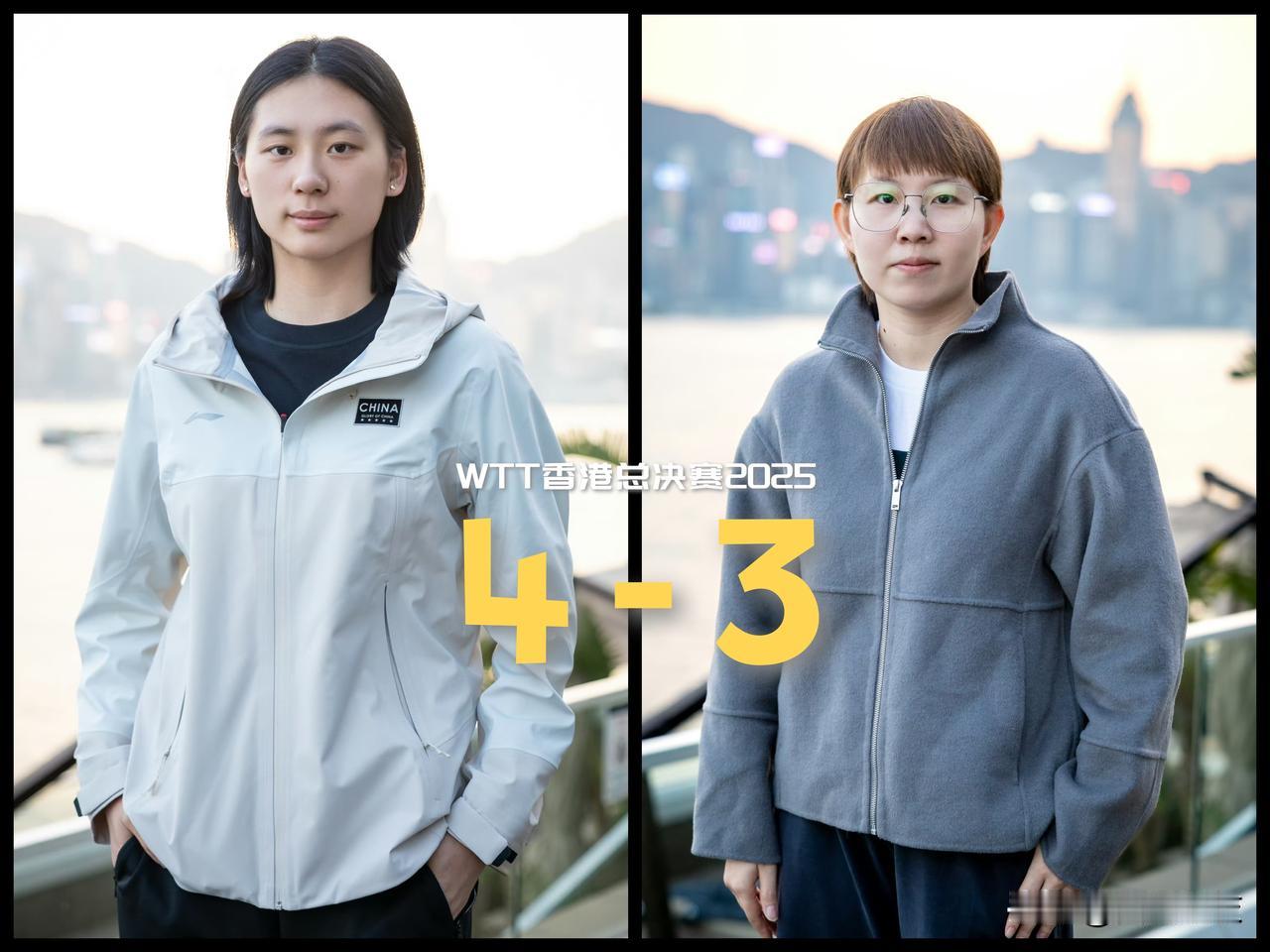 【决胜局分胜负!陈熠险胜朱雨玲晋级女单八强!】 WTT香港总决赛女单1/8决赛次场,陈熠4-3险胜中国澳门朱雨玲,七局比分:11-6、7-11、11-6、10-12、11-9、4-11、11-8。 这是迄今为止,本届赛事首场满局比赛,这应该也是今年陈熠首次击败朱雨玲。 恭喜陈熠晋级女单八强,不过下一轮她将面对的是陈幸同!