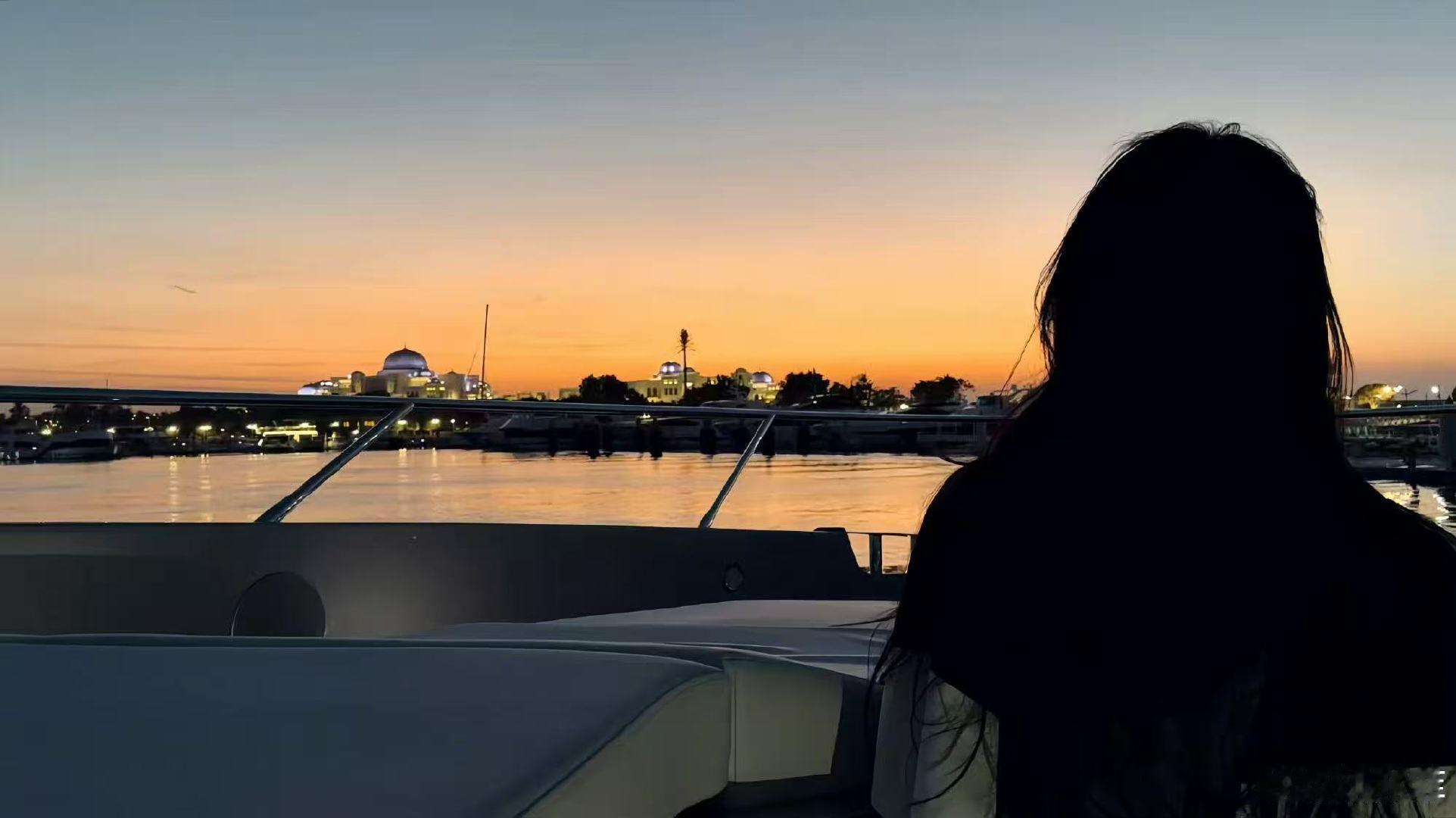 刘亦菲晒游艇落日海风刘亦菲阿布扎比落日照刘亦菲阿布扎比落日照刘亦菲