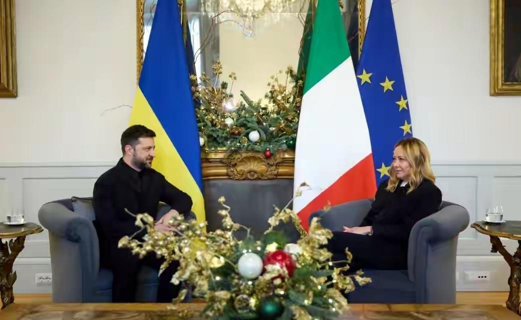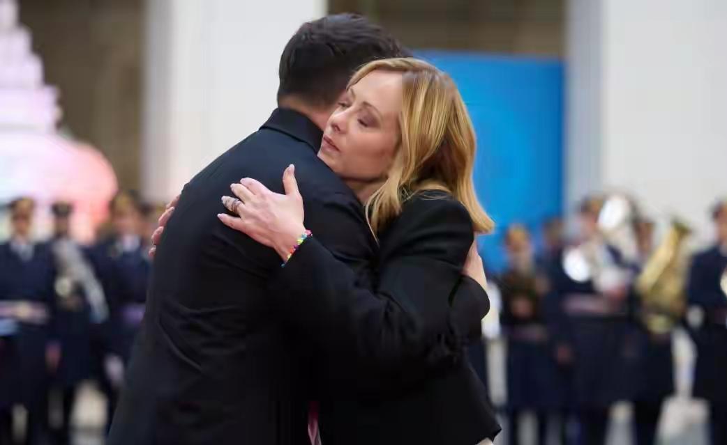 12月9日,意大利女总理梅洛尼在罗马官邸欢迎来访的乌克兰总统泽连斯基。 梅洛尼穿着一身黑色夹克风小西装,直发换成了齐肩卷发,更显松弛和时尚。 泽连斯基这些年一直以来都是以工装造型亮相,这次也难得穿上了西装风外套,虽然不是正装,但是比起工装也正式了不少。 梅洛尼为泽连斯基举办了隆重的欢迎仪式,两人也算是老朋友了,梅洛尼热情地拥抱了泽连斯基,之后两人手拉着手很是亲密。 梅洛尼如今已经48岁了,但是无论是颜值,还是气质都依旧在线,穿着这样的小西装,还烫着金色大卷发,依旧很美!