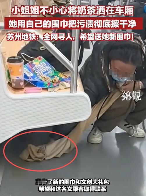 “值得点赞!”苏州一女生坐地铁时,不慎将奶茶打翻,座椅和地上全是奶茶,她包里纸用完了都没弄,眼看要到站了,都以为她会不管了,结果,她竟然解下自己围巾,将奶茶全部擦干净才下车。 围巾擦掉的奶茶渍,比地铁玻璃还透亮——这事儿真不是段子。 那天午后,地铁11号线车厢微微摇晃,顾女士手里的奶茶突然一歪,大半杯全泼在了浅色座椅和地面上。周围目光聚过来,她脸一下红了,手忙脚乱翻包,纸巾用完了,污渍还在那儿摊着,黏糊糊一片。 “这下怎么办?”旁边有人小声嘀咕。她没接话,手指碰到了颈上的围巾。那是条米白色的羊毛围巾,挺柔软。几乎没犹豫,她将围巾解了下来。 “总不能让下一批乘客坐这儿吧。”这念头一起,动作就快了。她蹲下身,开始用围巾一角用力擦拭。奶茶渗进纤维,米白染上茶褐色,她擦得很仔细,从椅面到地板缝隙,直到看不出明显痕迹。站起来时,地铁刚好到站,她攥着脏围巾下了车,没回头。 后来视频火了,拍摄者说:“我本来都准备摇头了,结果看到她解围巾,真的愣住。”网友留言更直白:“这就是素质!” 事情传到苏州地铁那边,倒让他们犯了难。表扬是肯定的,可怎么奖?罚有规章,奖无先例。最后工作人员一拍板:“人家能用自己围巾擦,我们就不能送条新的?” 于是全网寻人,备好了新围巾、文创礼包。找到顾女士时,她正接孩子放学,听了来意直摆手:“真不用,自己弄的,就该我自己收拾干净。”工作人员硬塞过去:“这不是奖励,是咱的谢意。您这条围巾,可给我们上了一课。” 当然小编在这里提醒您,乘坐地铁时,请拿好手中的饮料。若不慎洒落,请勿慌张,第一时间联系工作人员获取帮助,或尽量用自带的纸巾清理。 而对于此事我们只能说,城市文明的刻度,往往不在宏大的宣誓里,而藏在这些伸手可及的细节中。一条弄脏的围巾,一次向下的俯身,比任何标语都更有说服力。 它提醒我们,保持体面有时需要付出一点私人代价,但正是这点代价,让共享的秩序有了真实的温度。下一次谁再不小心洒了东西,或许会想起这个画面,然后,从口袋里掏出纸巾。 对此您怎么看?欢迎大家到下方评论区留言共同讨论。 正能量出行素质点赞暖心瞬间 信息来源: 第1眼新闻 |《苏州地铁,全网寻人!12月3日,一位女乘客在地铁上打翻了奶茶,用自己的围巾把座位和地面的污渍擦干净。苏州地铁回应:真诚地对她说一声谢谢,给她准备了一条新围巾。》 文|沐琨 编辑|南风意史